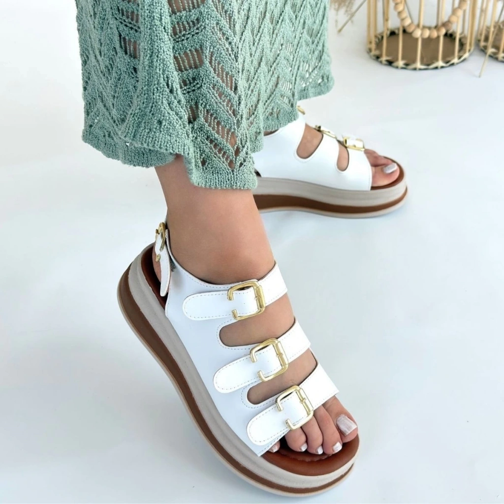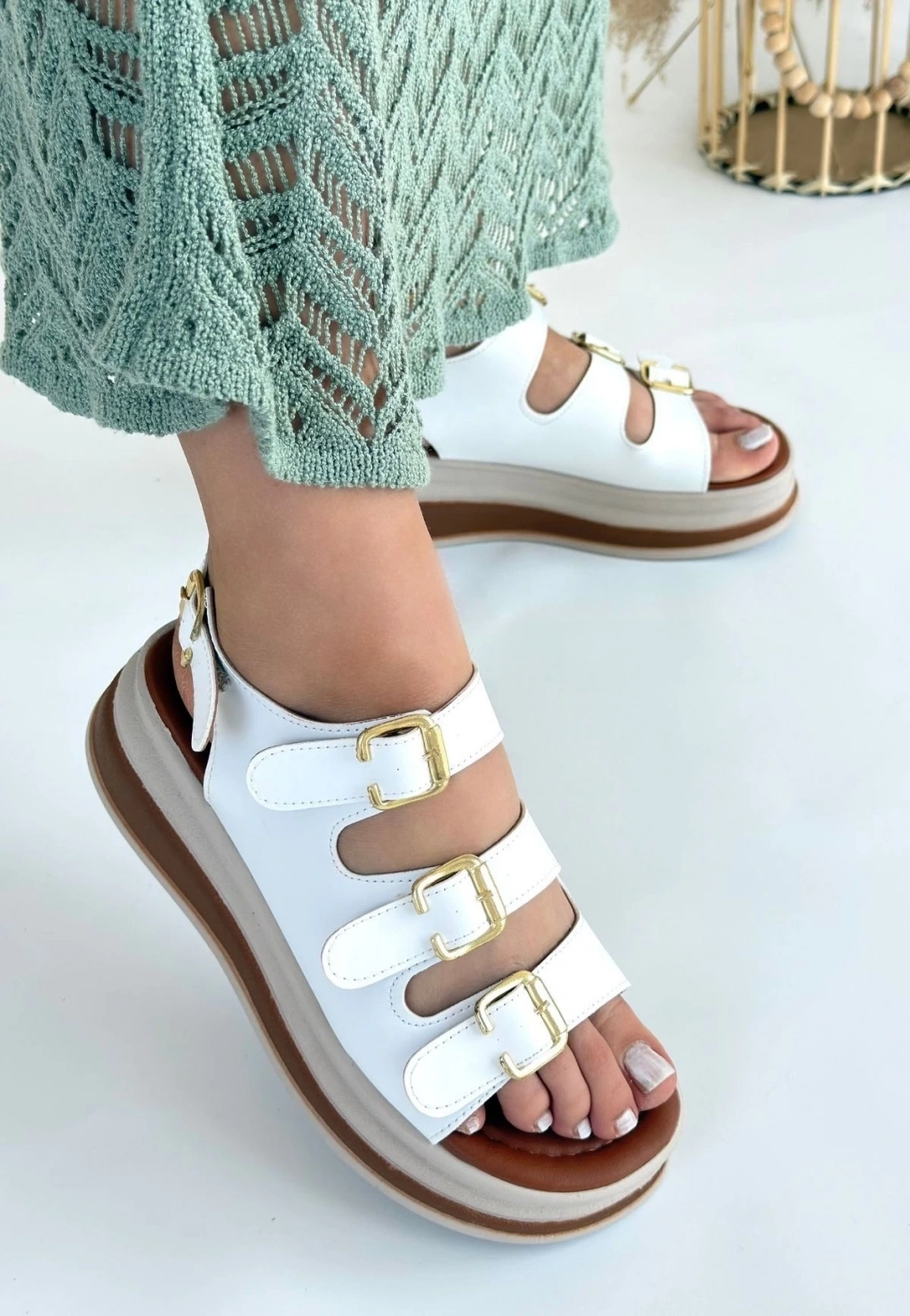 BİÇOMİ Jatay Beyaz Cilt Sandalet