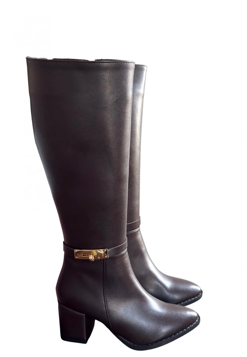 BİÇOMİ Jeoli Kahverengi Cilt Topuklu Çizme