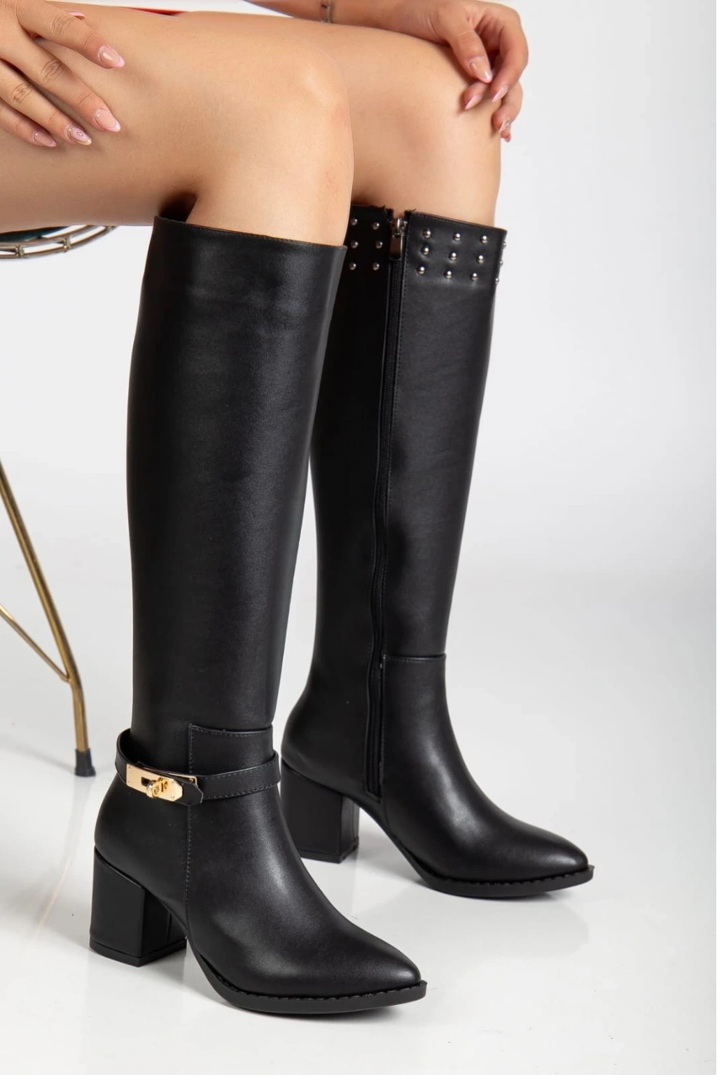 Detay: Topuklu Diz Altı Yandan Fermuarlı Çizme