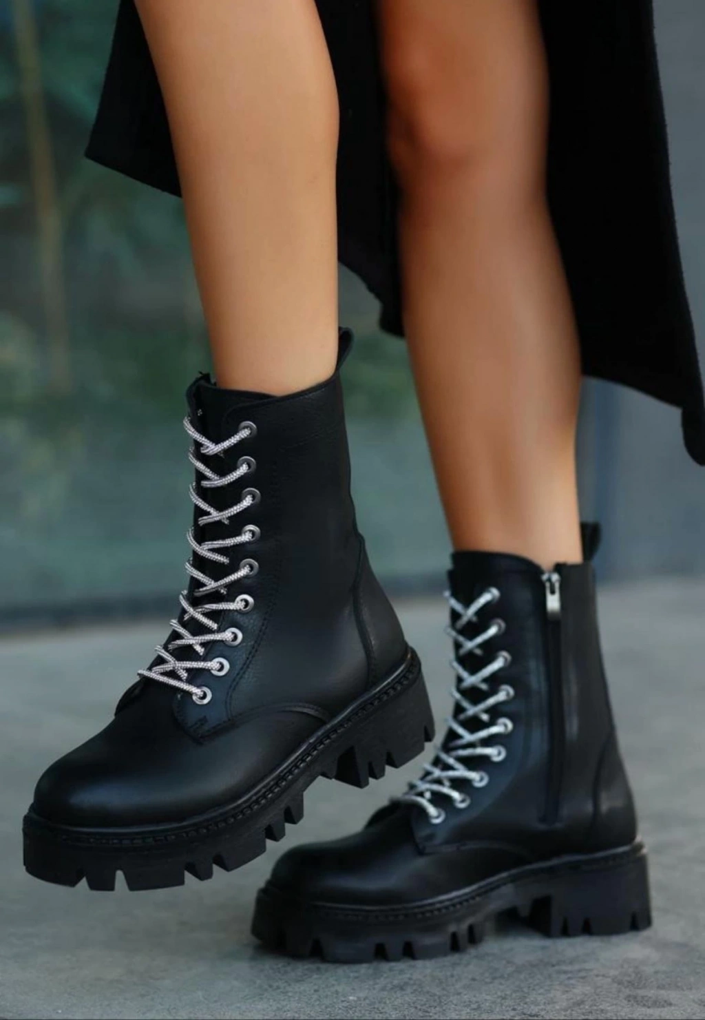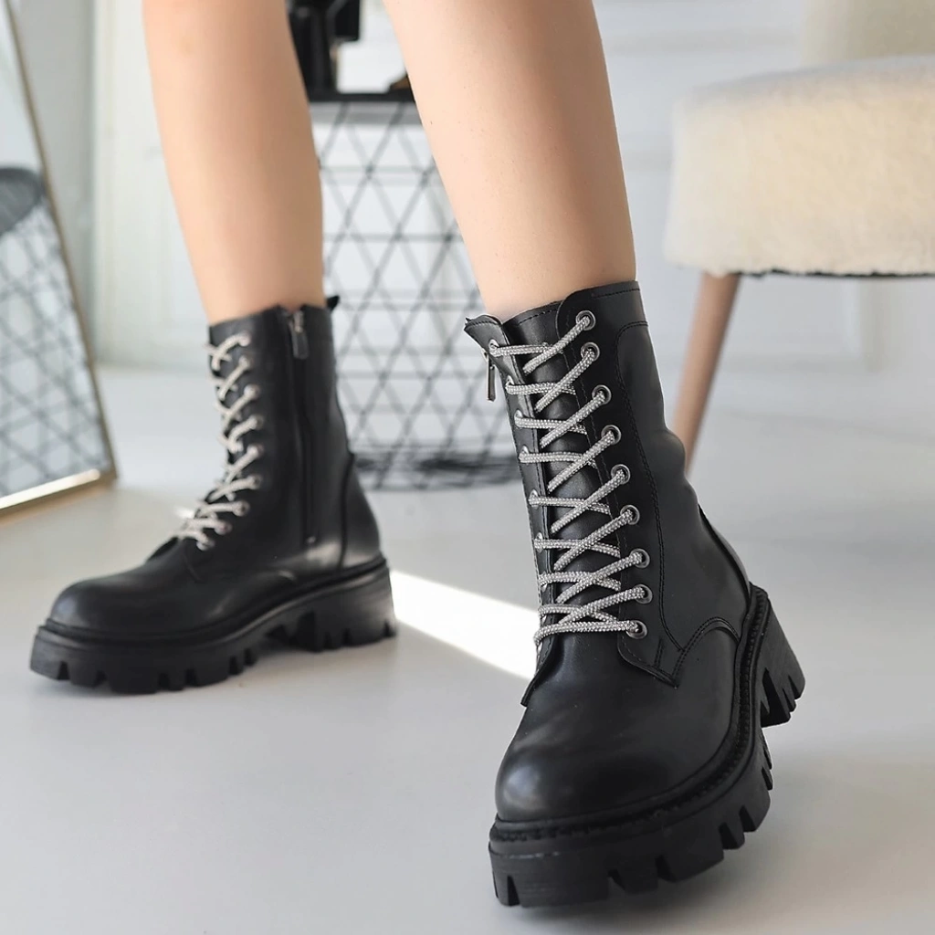 BİÇOMİ Jinox Siyah Cilt Bağcıklı Bot