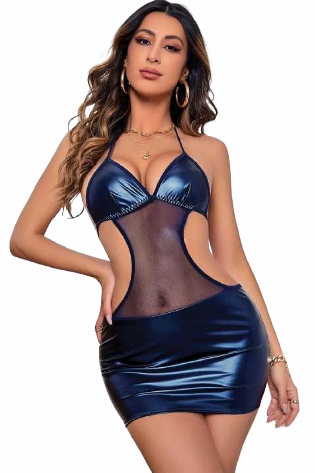 biçomi Kadın Fantezi Deri Kostüm Harness Erotik Kıyafet D21008 Mavi