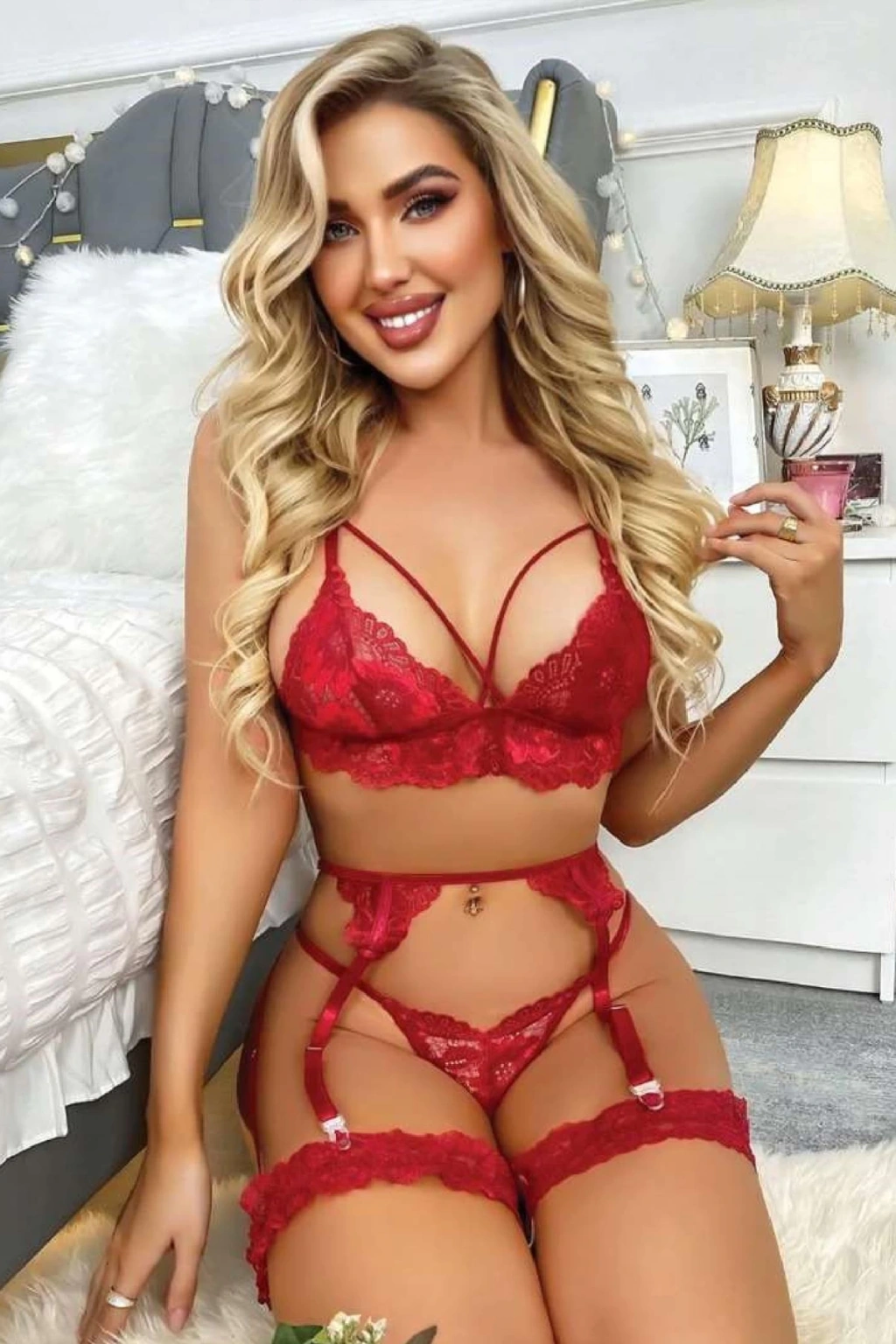 Kadın Fantezi Kostüm Harness Erotik Jartiyer 7081 Kırmızı - Biçomi