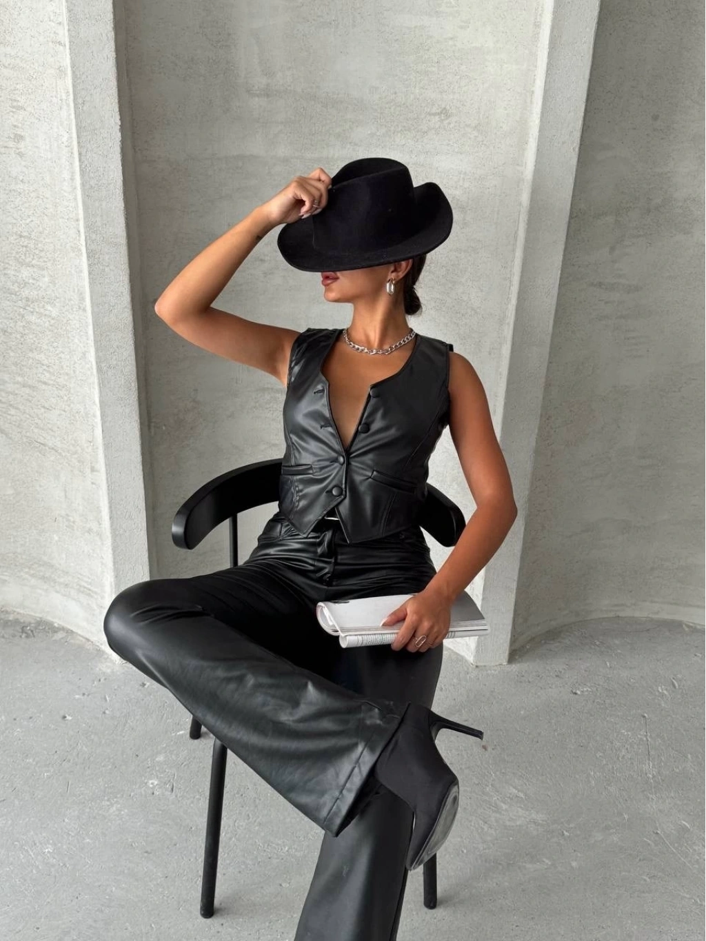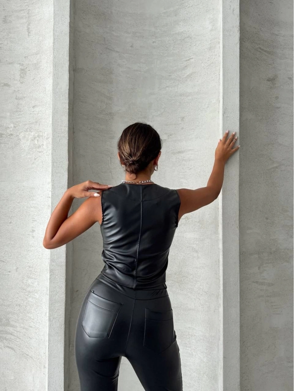 BİÇOMİ Kaplama düğmeli deri yelek siyah s24398