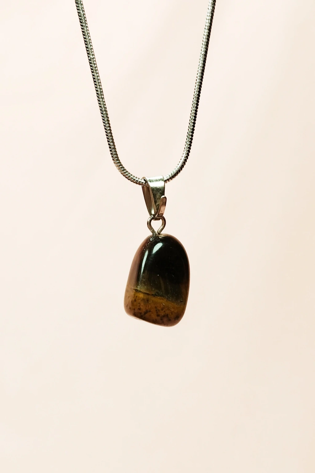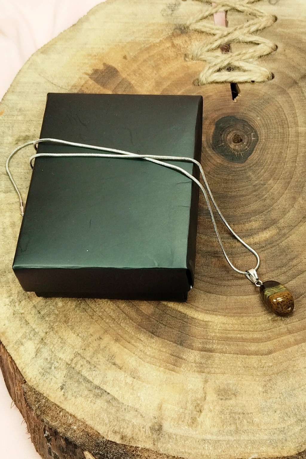 biçomi Kaplan Gözü Doğal Taşı Zincirli El Yapımı Kolye Uç: 2 cm Zincir: 20 cm Kutulu