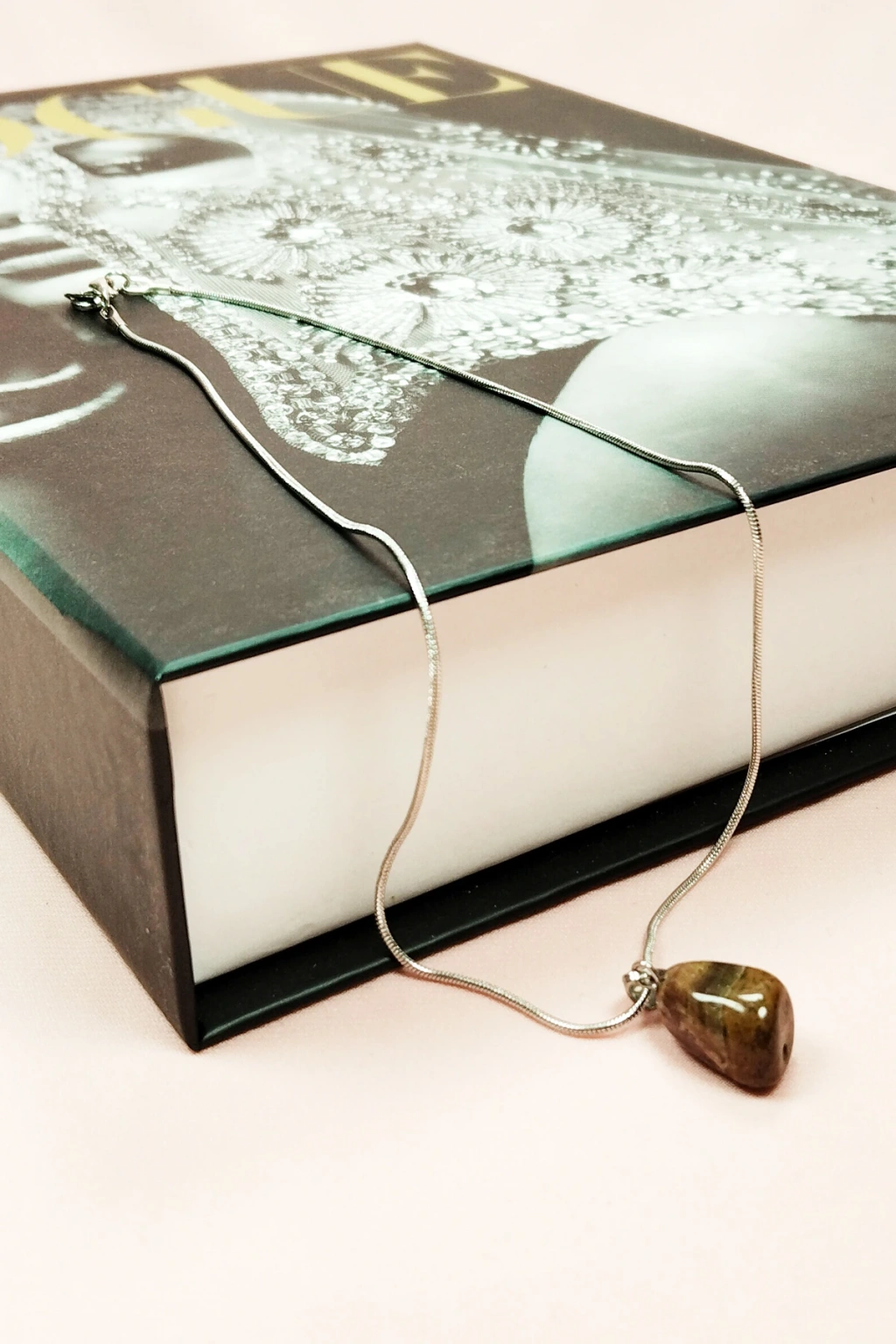biçomi Labradorit Doğal Taşı Zincirli El Yapımı Kolye Uç: 2 cm Zincir: 20 cm Kutulu