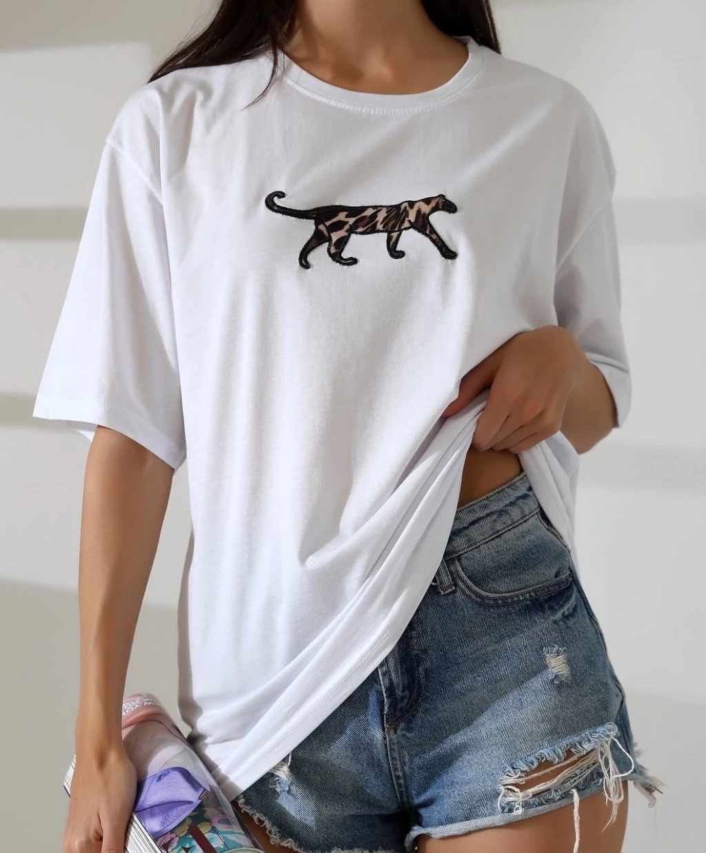 BİÇOMİ Kaplan nakış işlemeli Oversize tişört