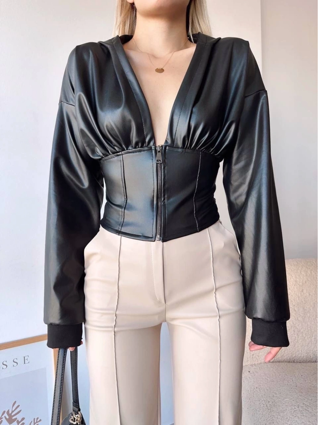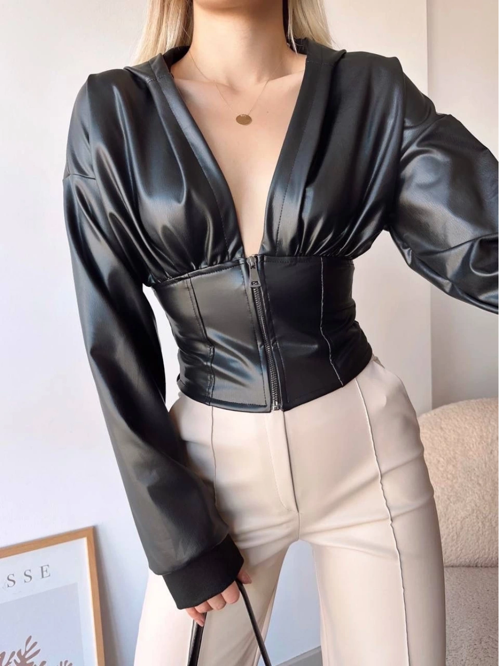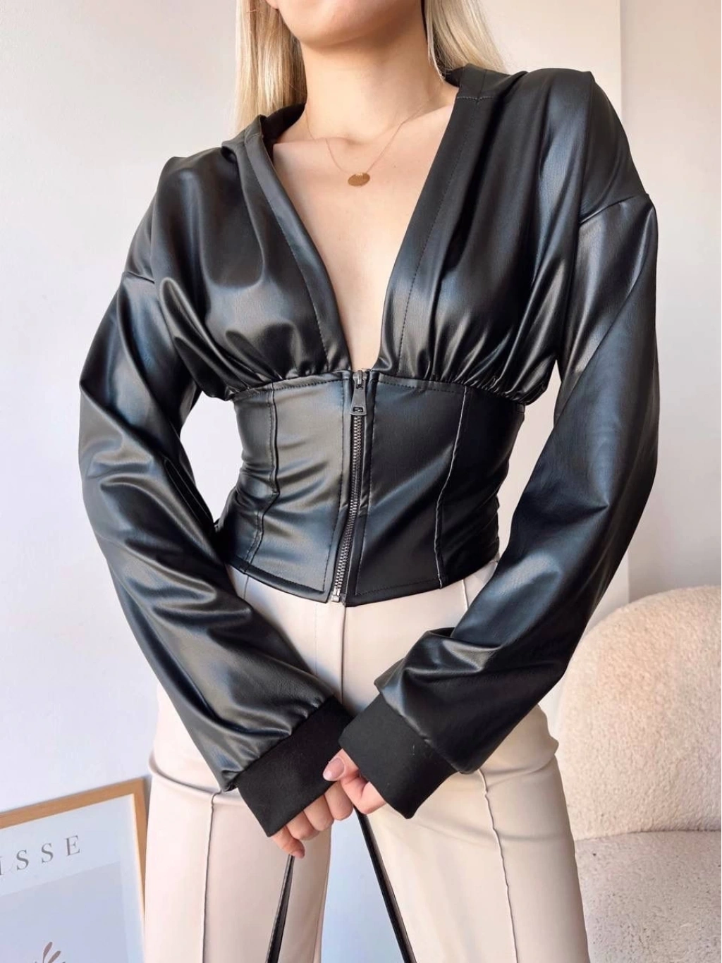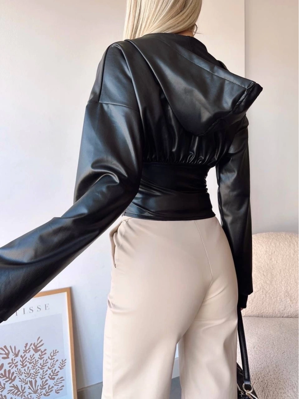 Şıklık ve rahatlık arayan kadınların tercihi olan siyah kapşonlu yarım fermuarlı ceket, her mevsim kullanım için idealdir.
