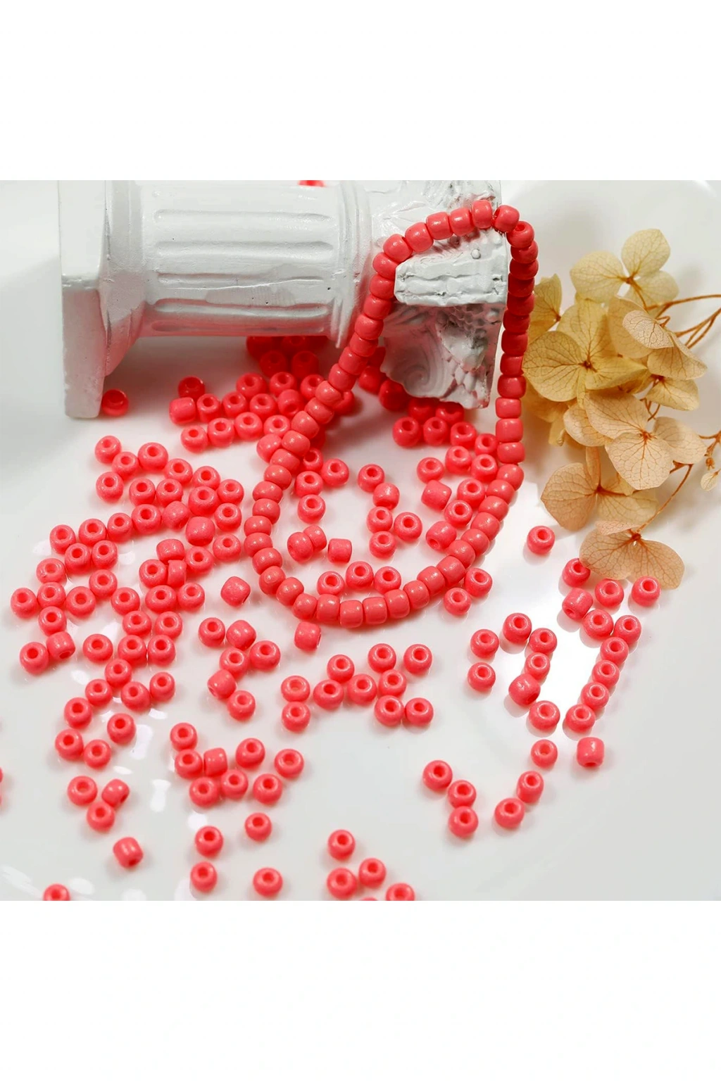 biçomi Karpuz Pembesi Renk 4 mm Yaklaşık 660 adet / 60 gram Cam Boncuk Oya Yazma Bileklik ve Kolye