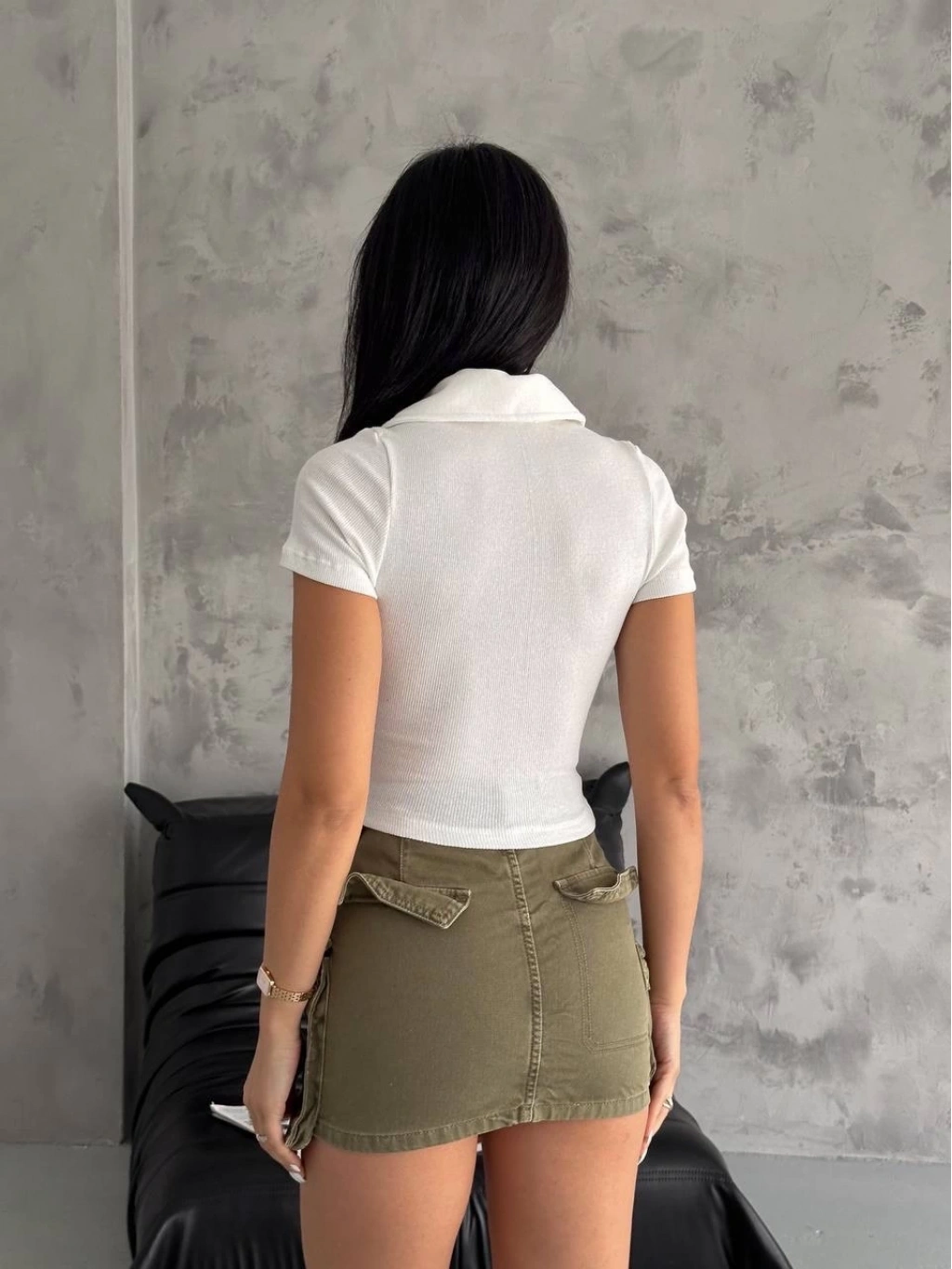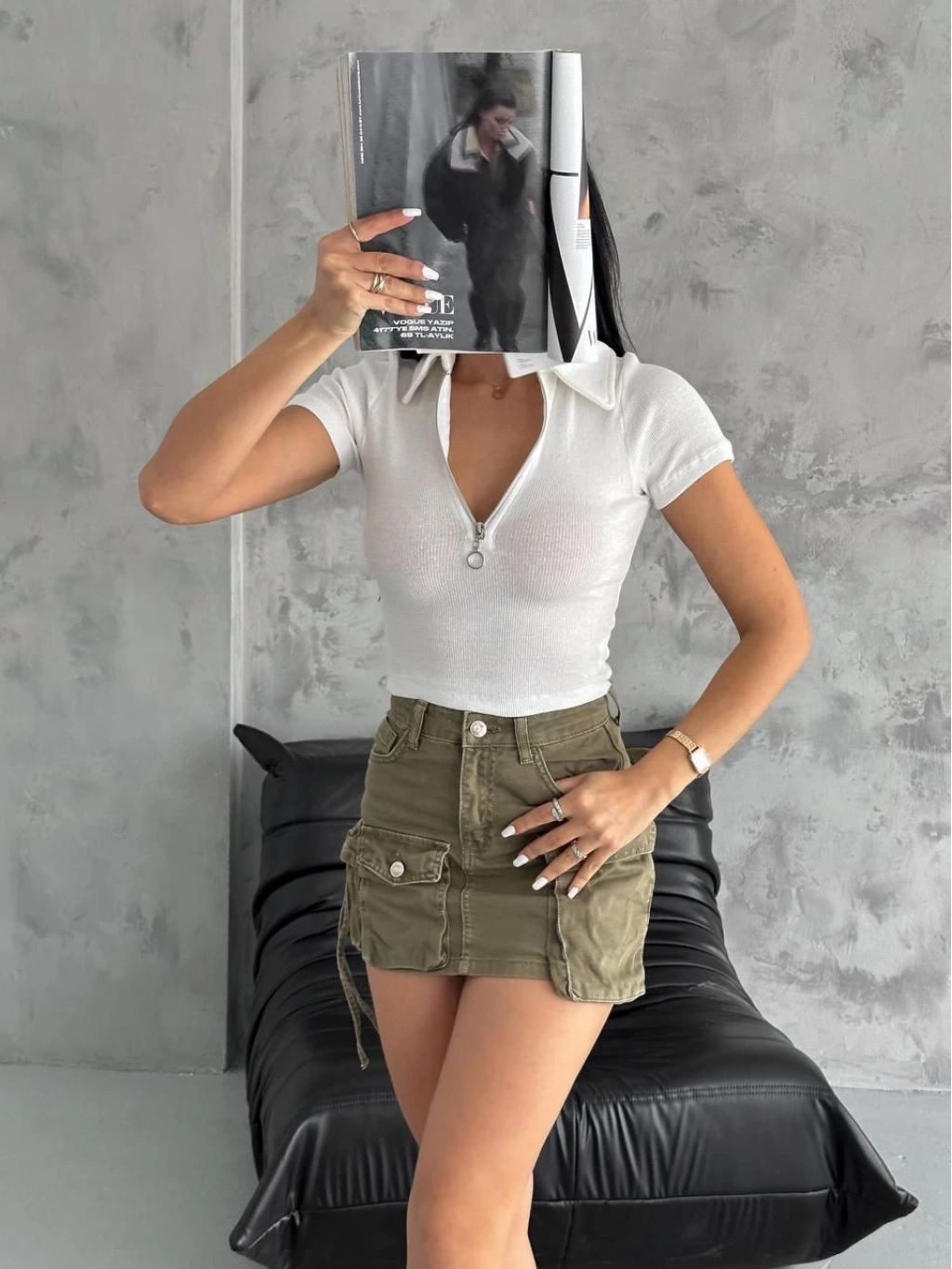 BİÇOMİ kaşkorse yaka fermuarlı bluz beyaz