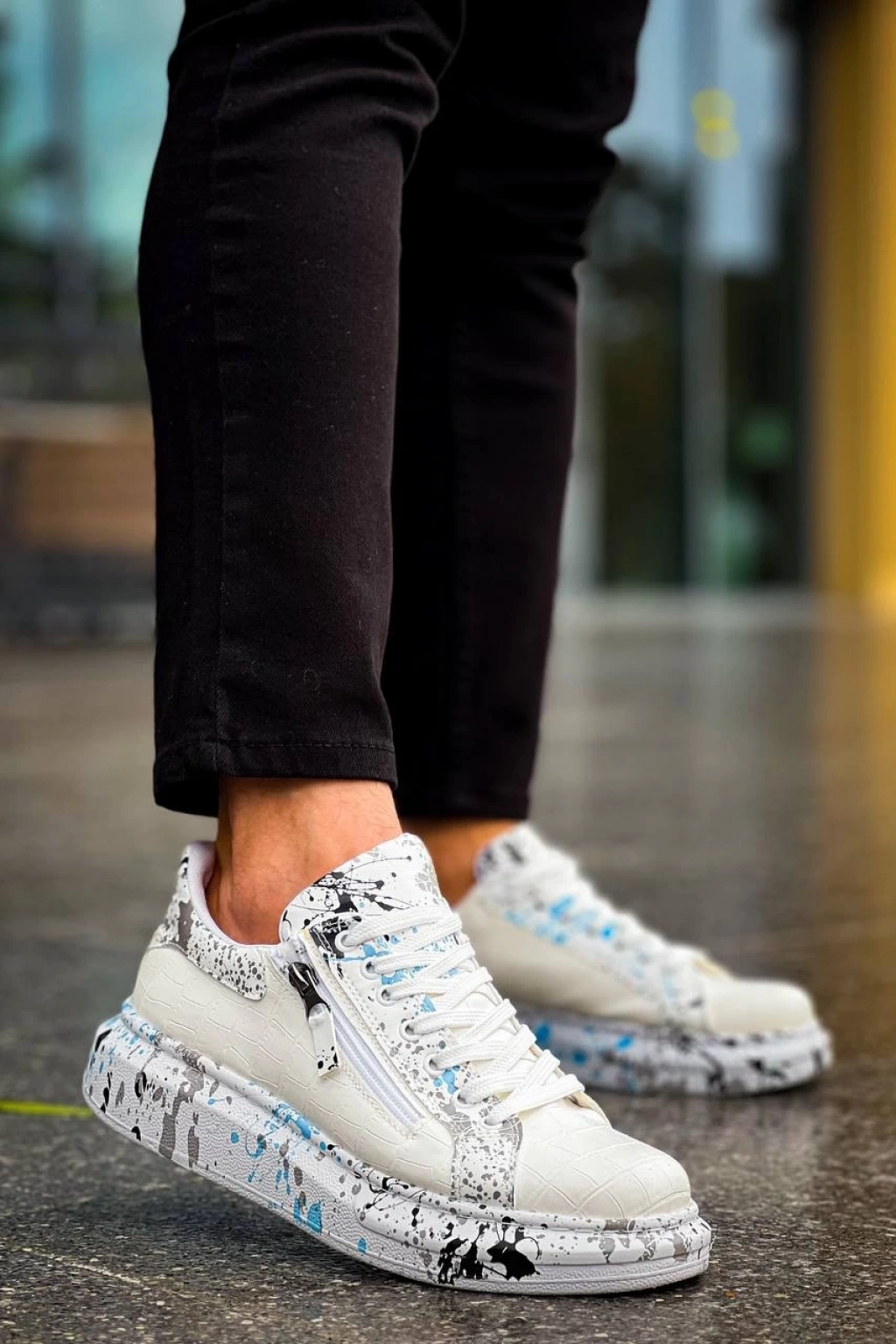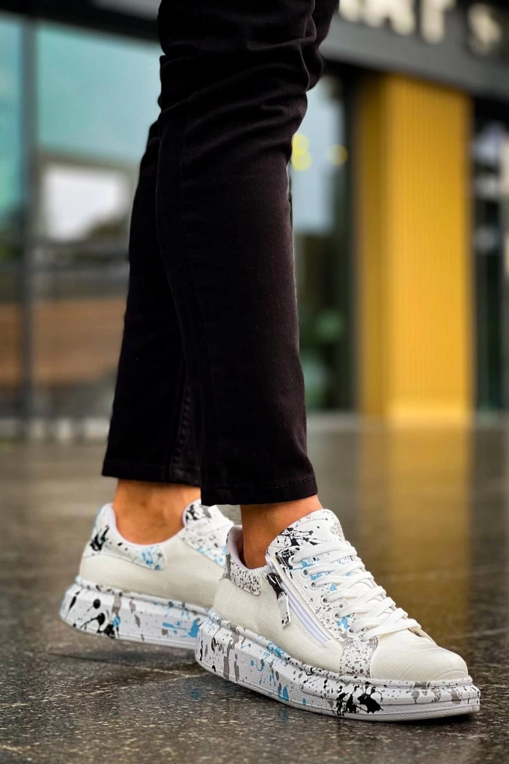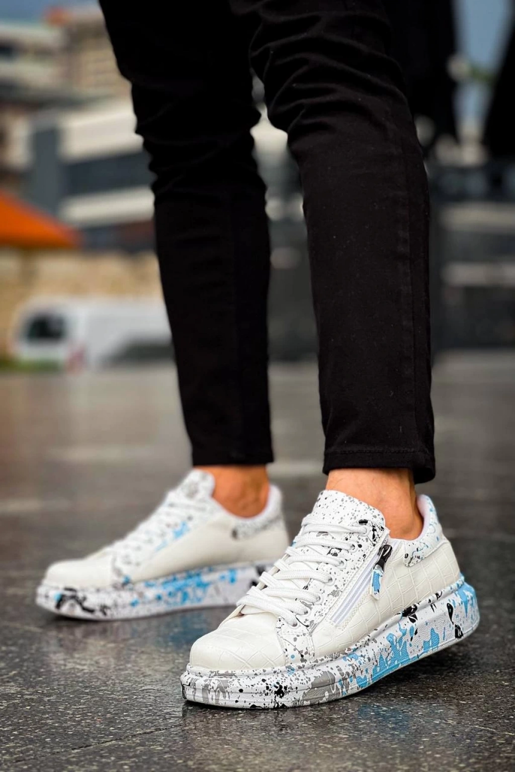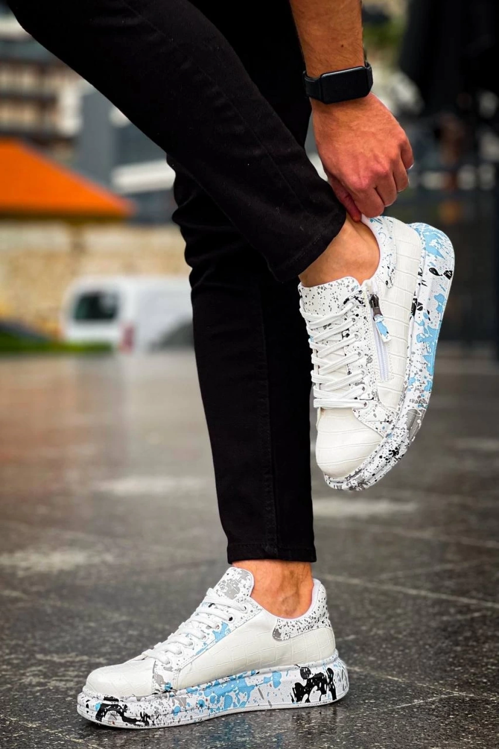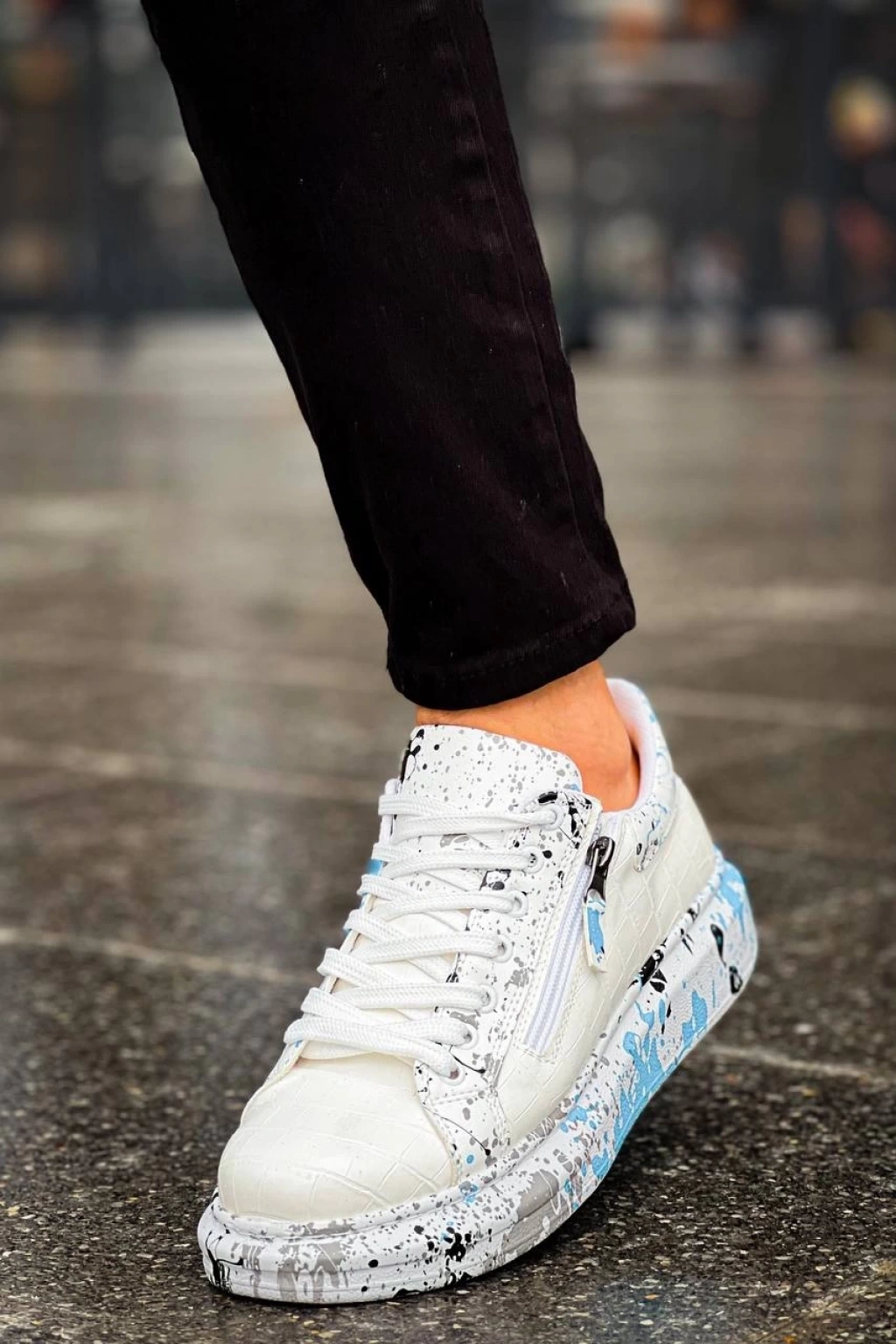 BİÇOMİ KB-02 Kuback Bağcıklı Crocodile Beyaz Mavi Günlük Erkek Ayakkabı