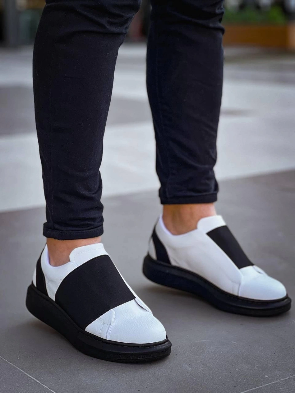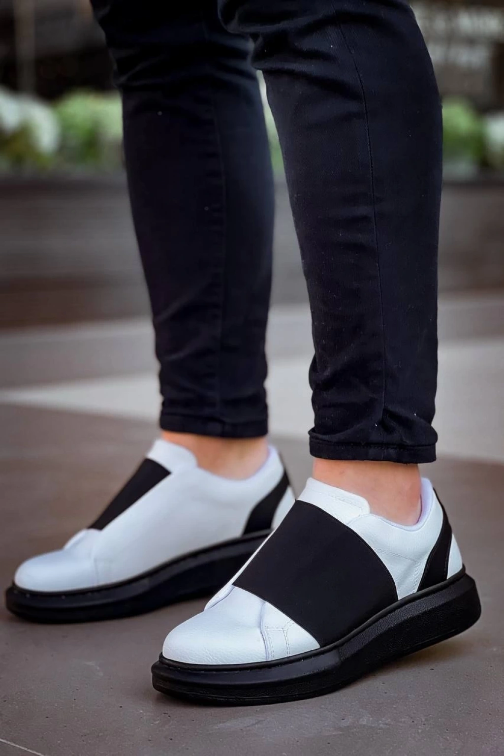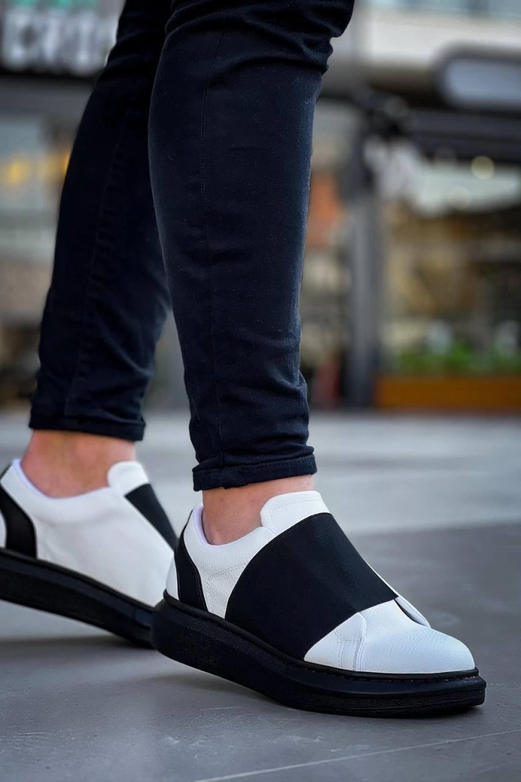 BİÇOMİ KB-040 Kuback Beyaz Cilt Siyah Yüksek Taban Lastikli Günlük Erkek Ayakkabı