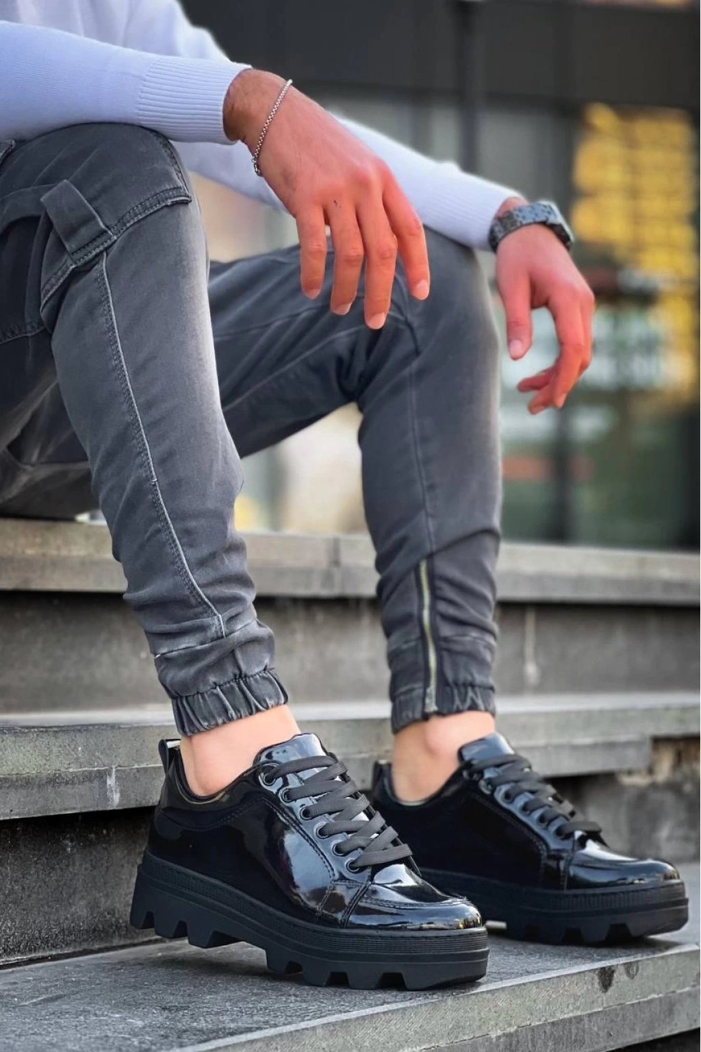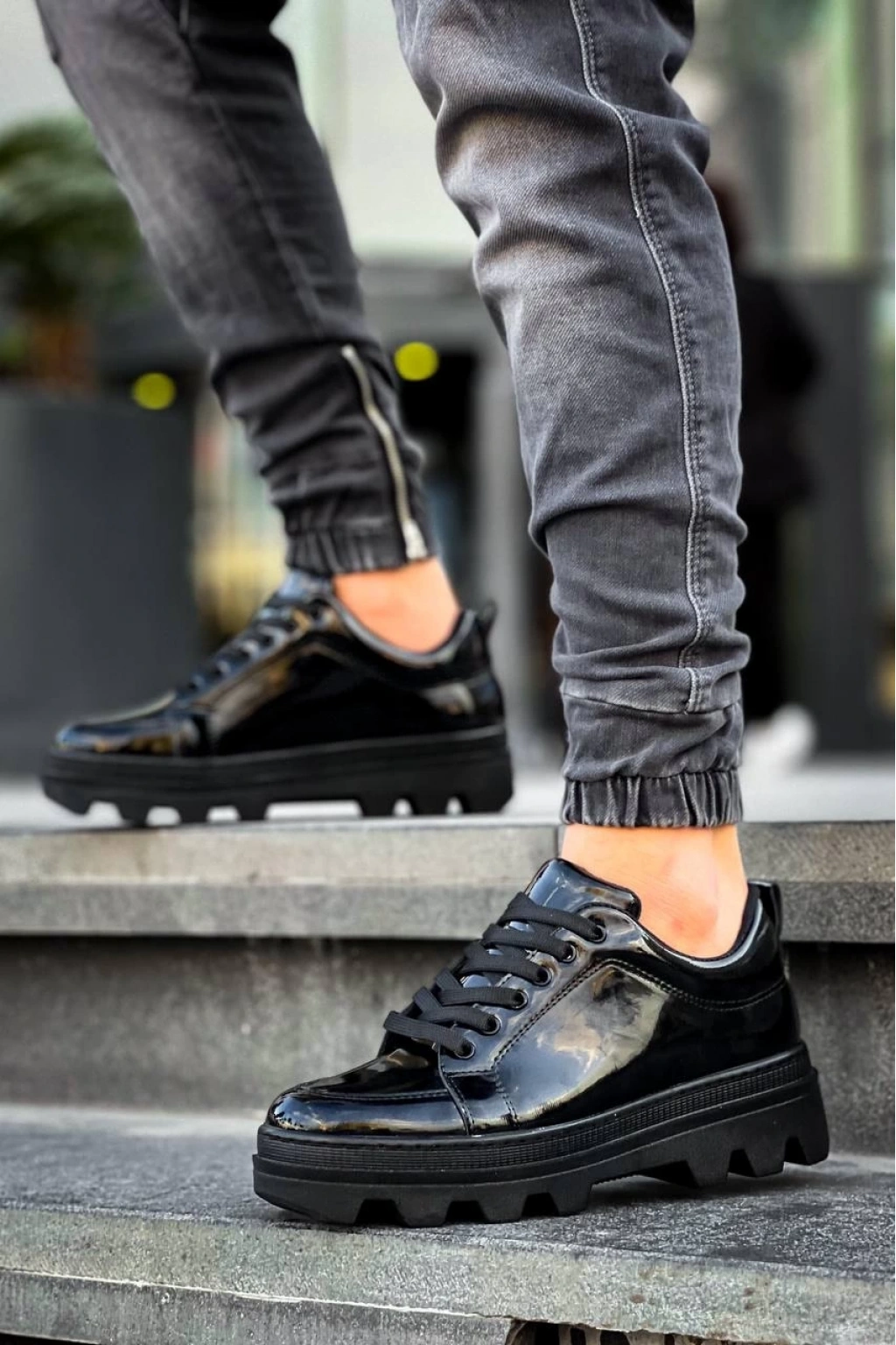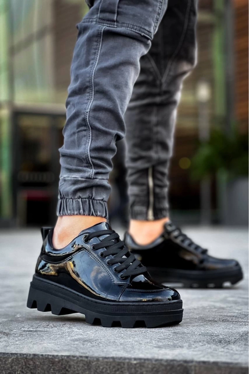 BİÇOMİ KB-056 Kuback Siyah Rugan Siyah Yüksek Taban Günlük Spor Ayakkabı