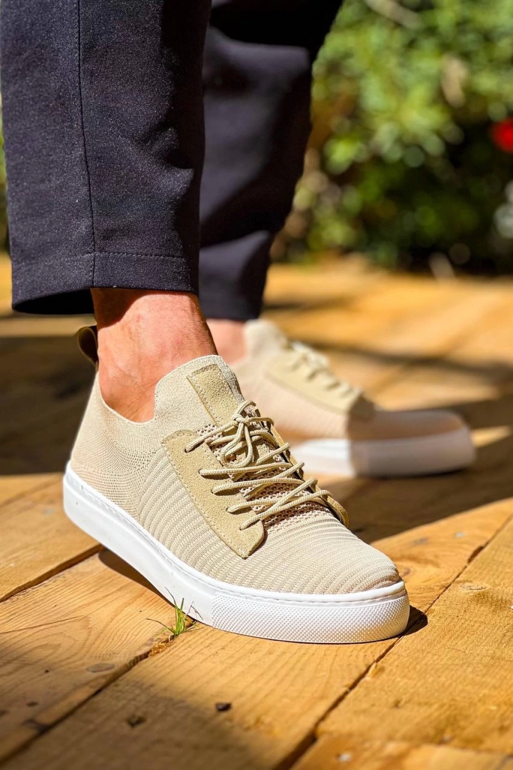 BİÇOMİ KB-110 Kuback Bej Triko Yüksek Taban Bağcıklı Günlük Erkek Ayakkabı