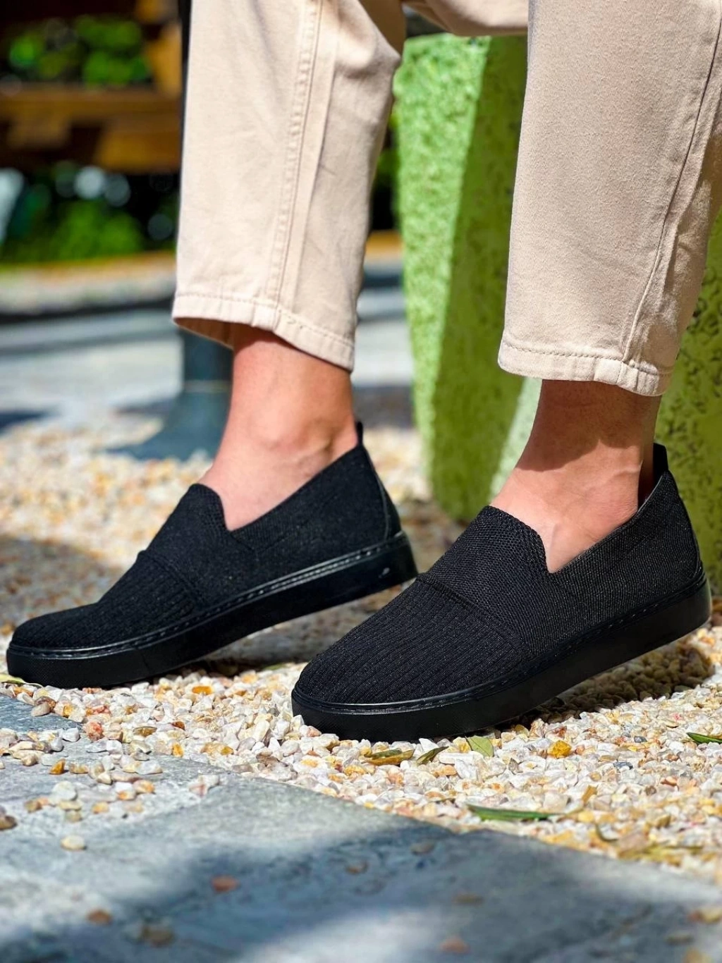 BİÇOMİ KB-114 Kuback Siyah Triko Siyah Yüksek Taban Bağcıksız Günlük Erkek Ayakkabı