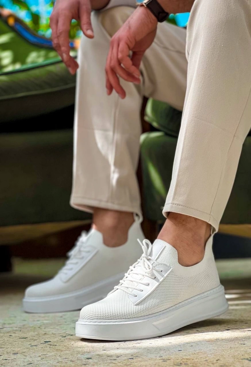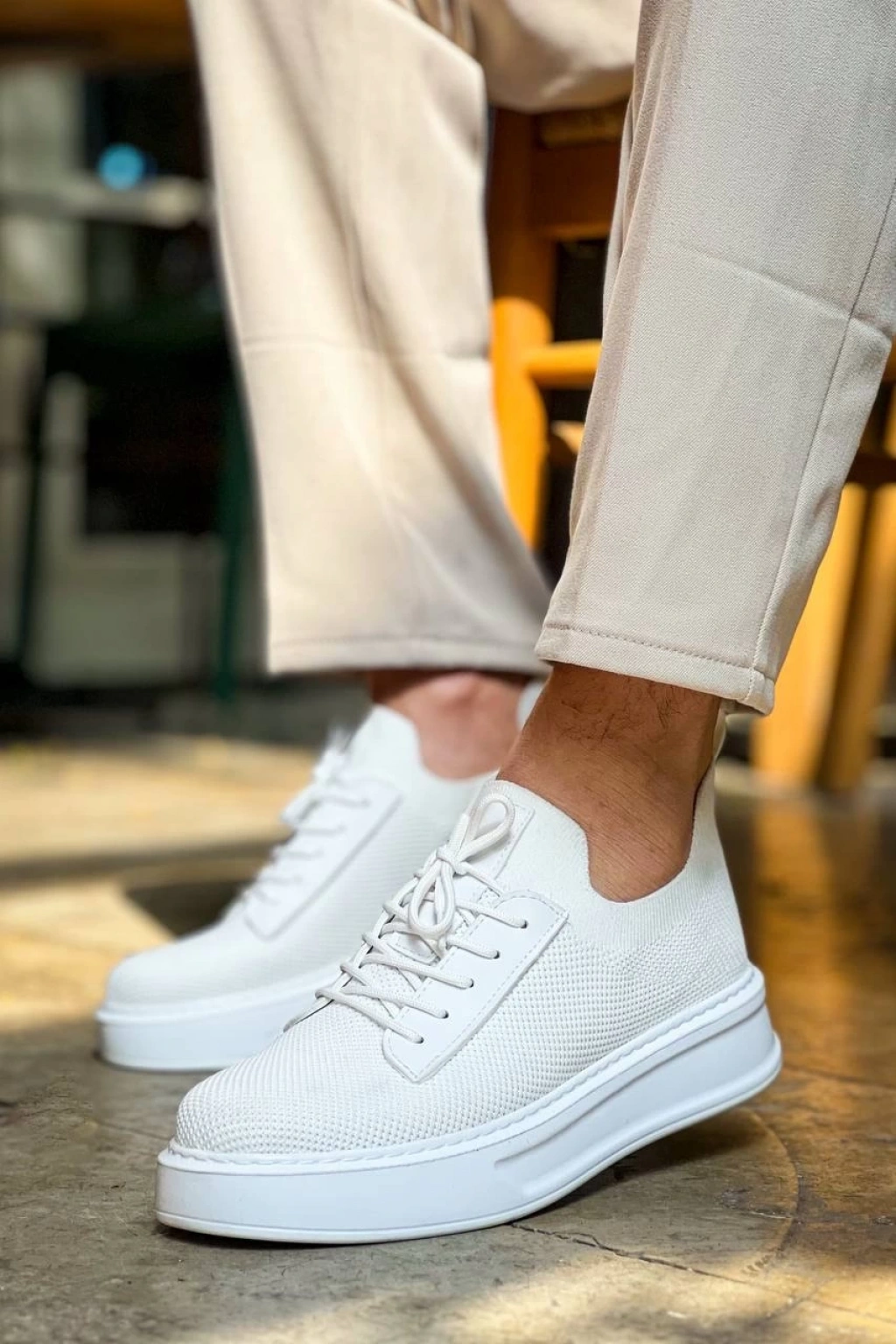 BİÇOMİ KB-116 Kuback Beyaz Bağcıklı Triko Günlük Erkek Ayakkabı