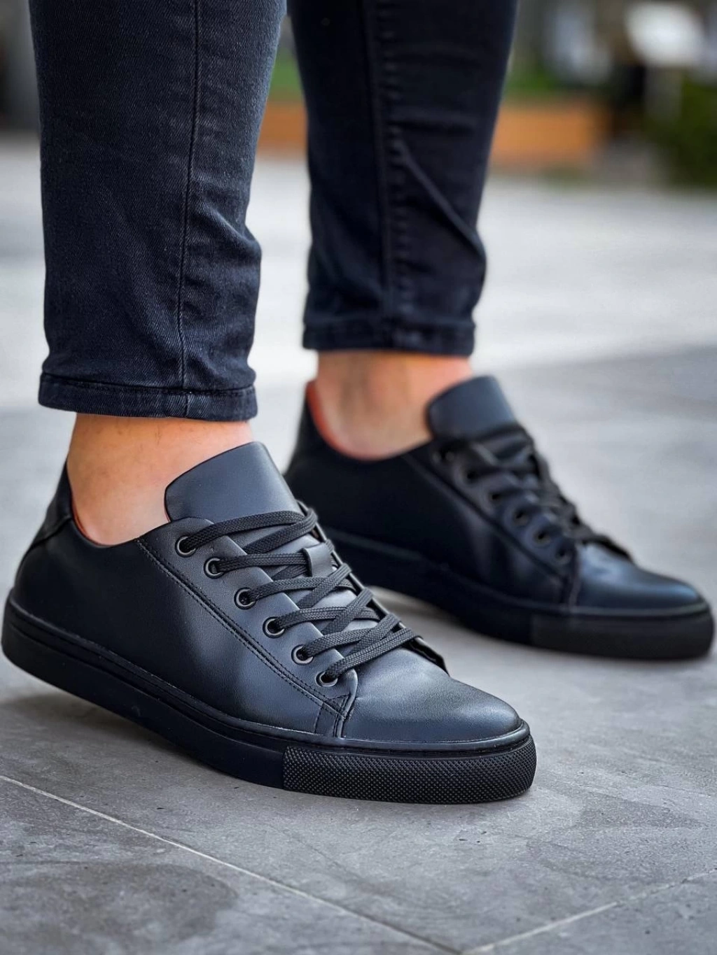 BİÇOMİ KB-122 Kuback Siyah Cilt Siyah Yüksek Taban Bağcıklı Günlük Erkek Ayakkabı