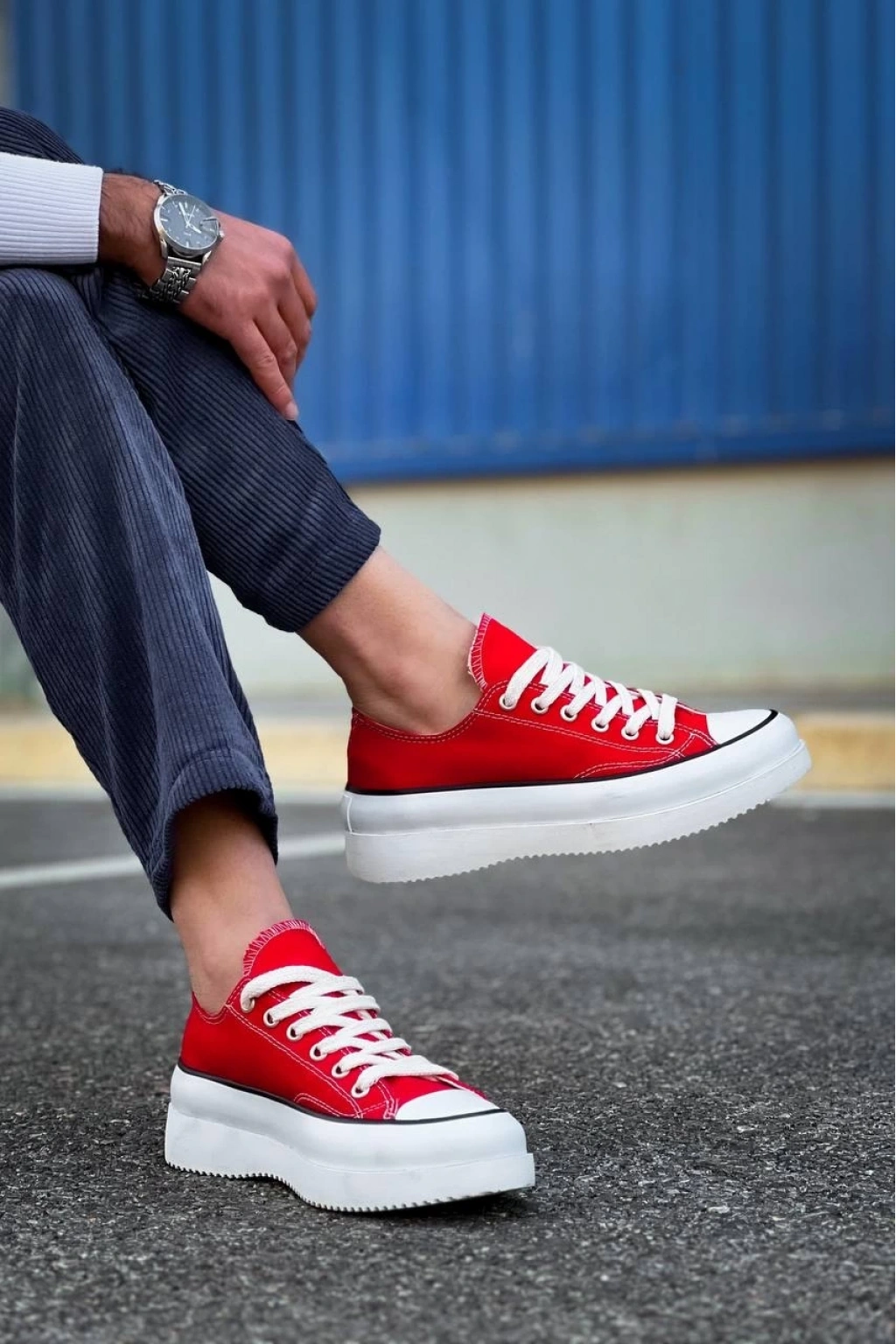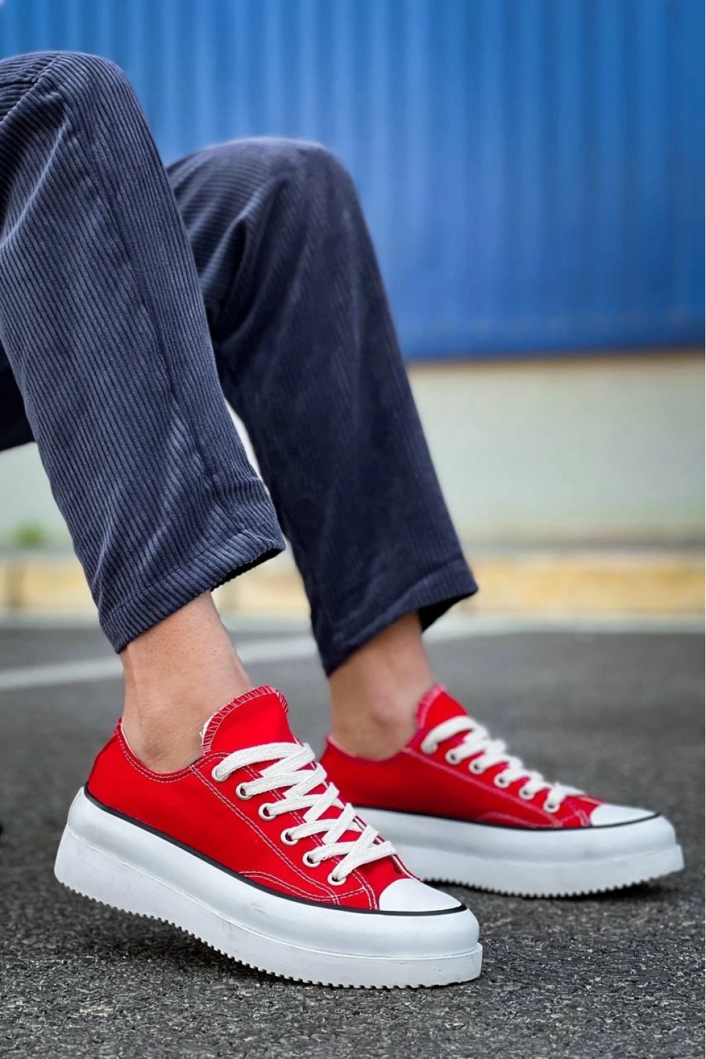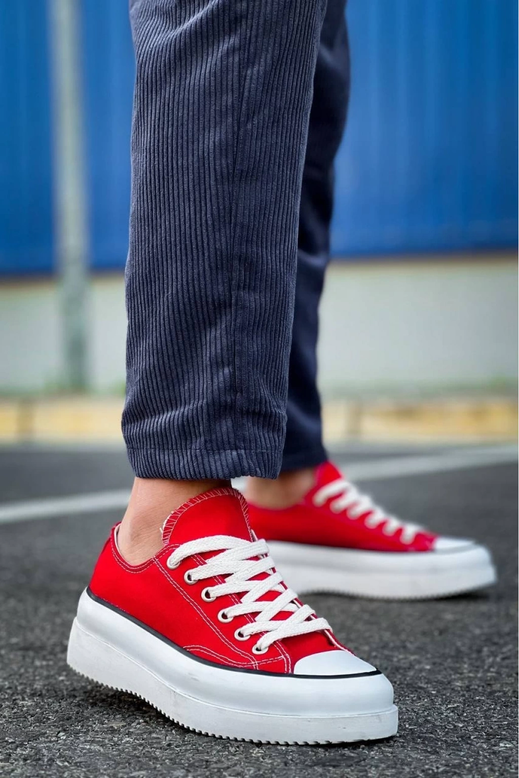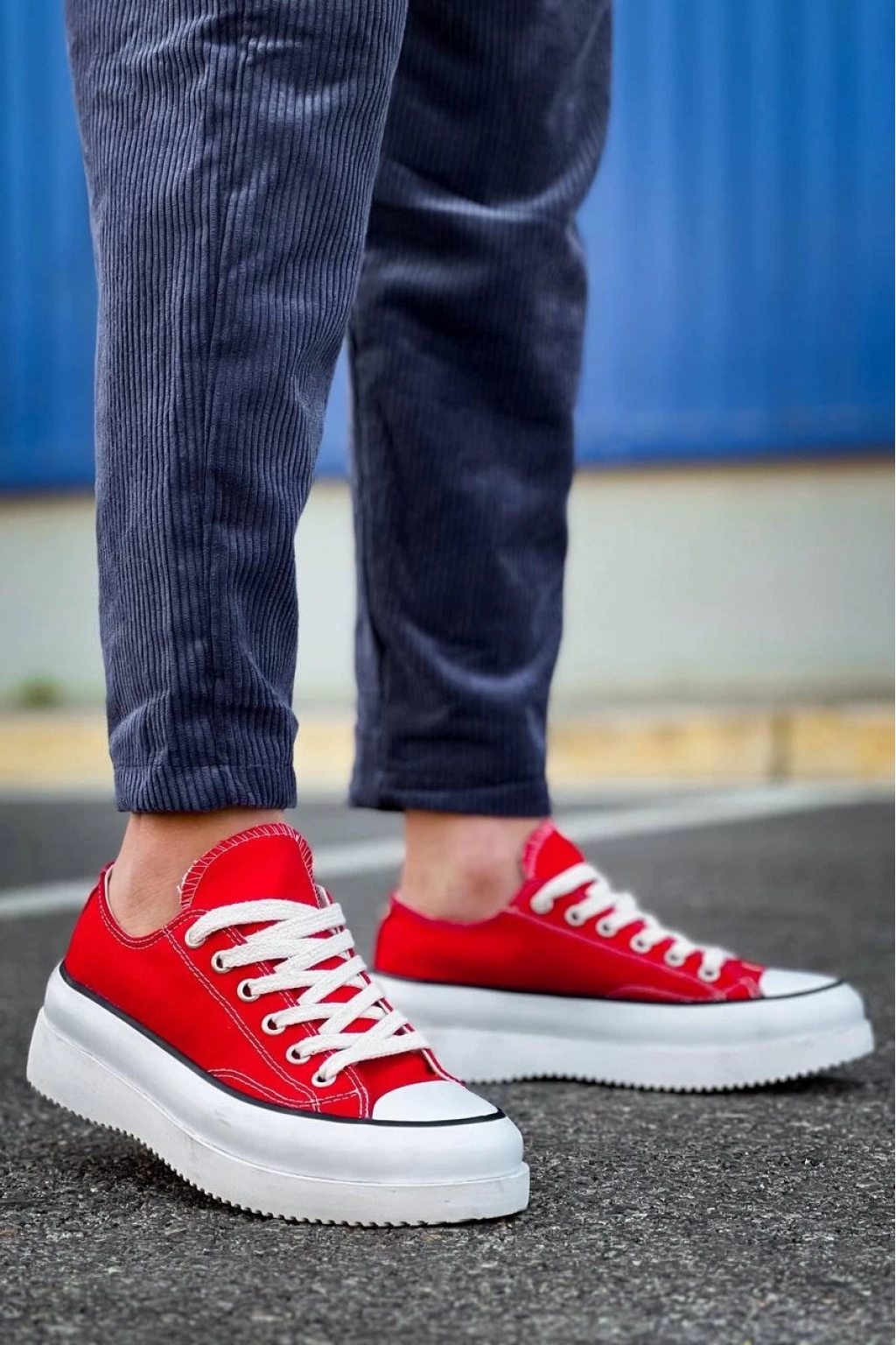 BİÇOMİ KB-CX-3 Kuback Kısa Kırmızı Keten Beyaz Yüksek Taban Spor Ayakkabı