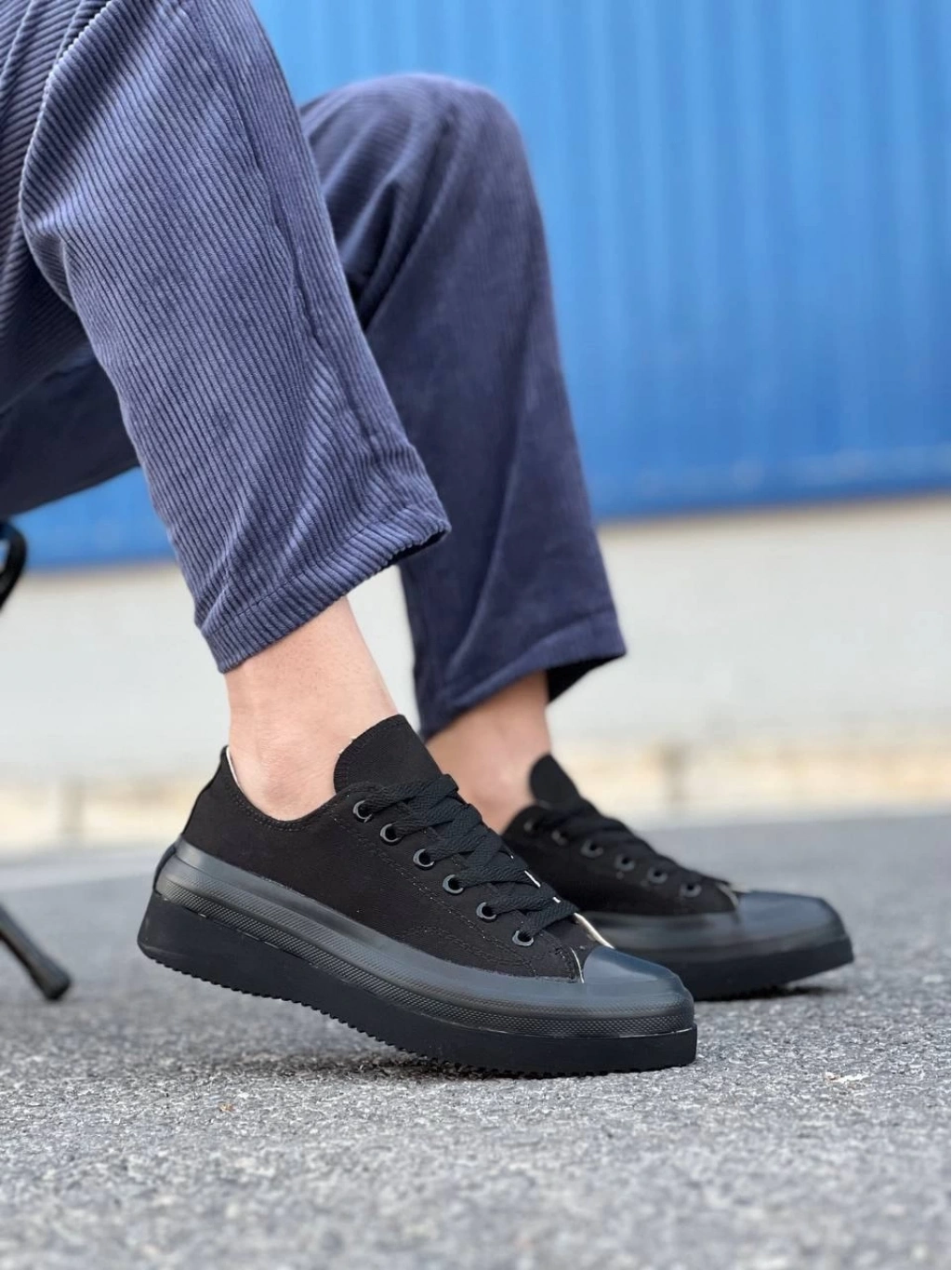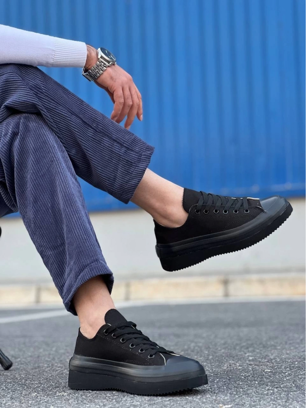 BİÇOMİ KB-CX-3 Kuback Kısa Siyah Keten Siyah Yüksek Taban Spor Ayakkabı