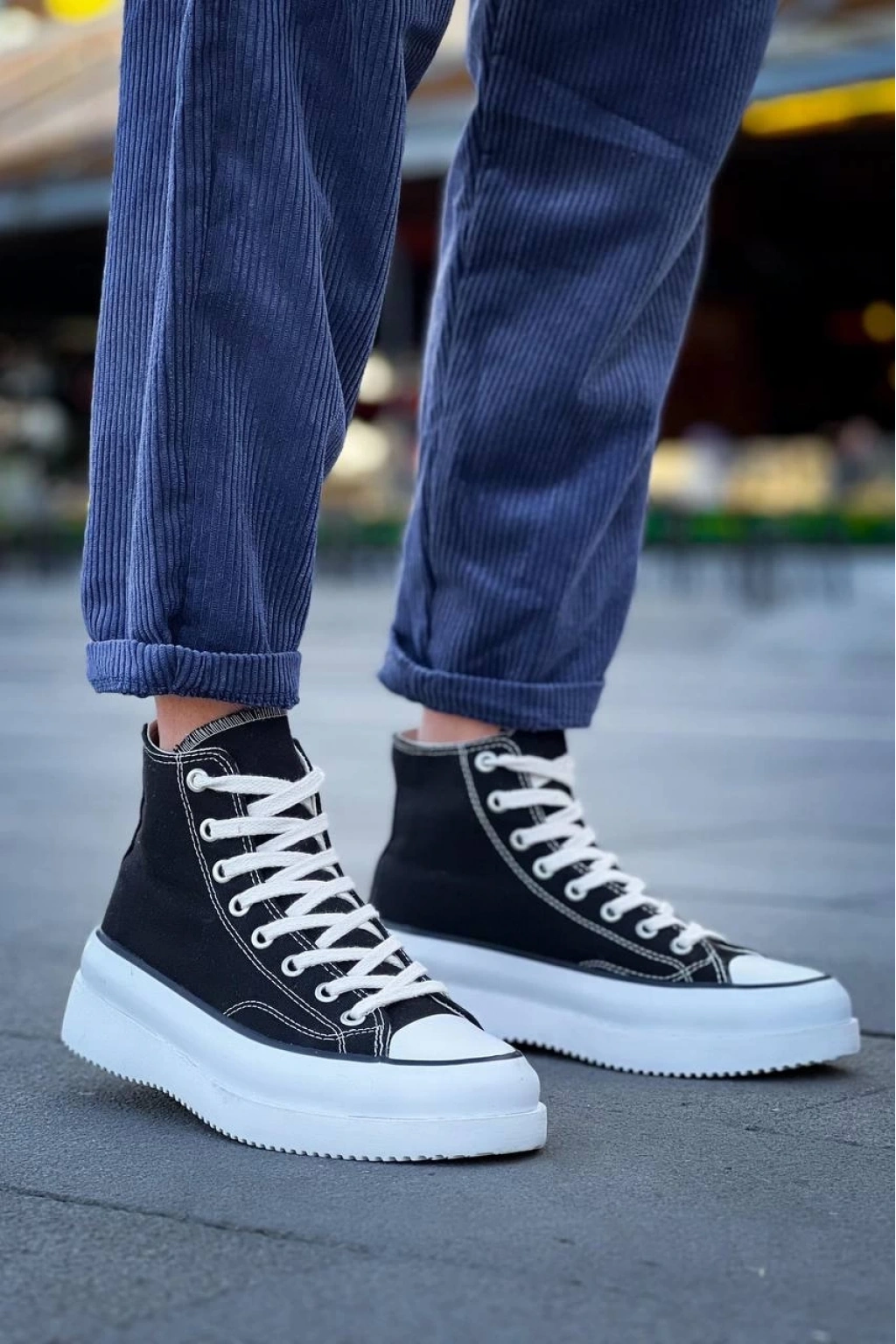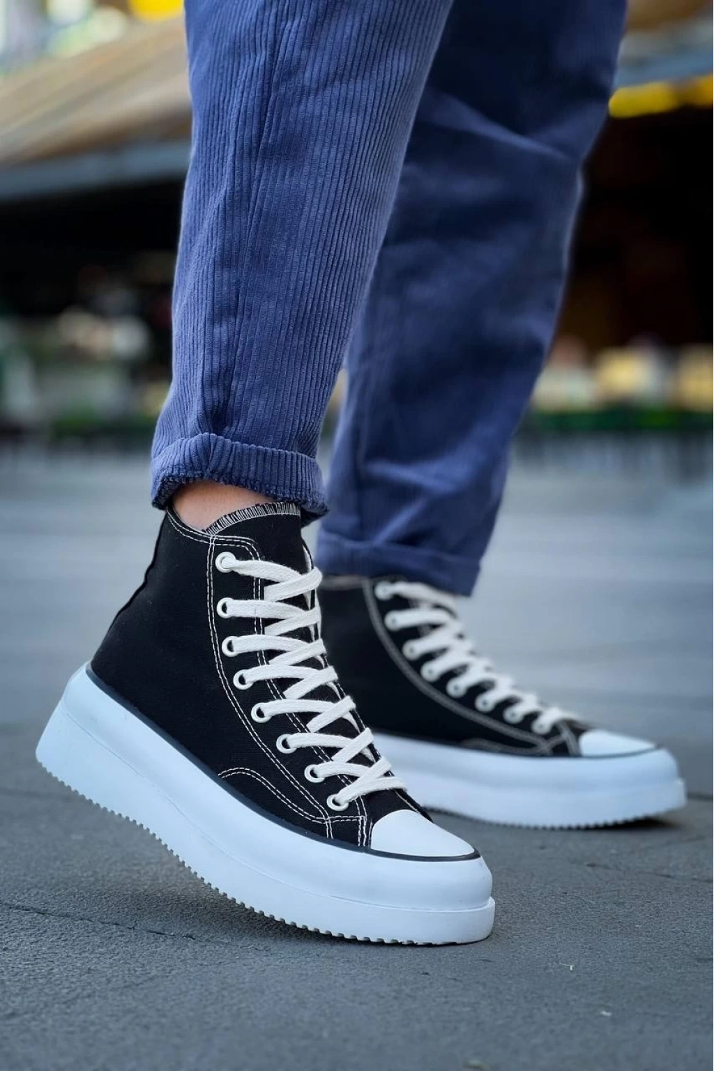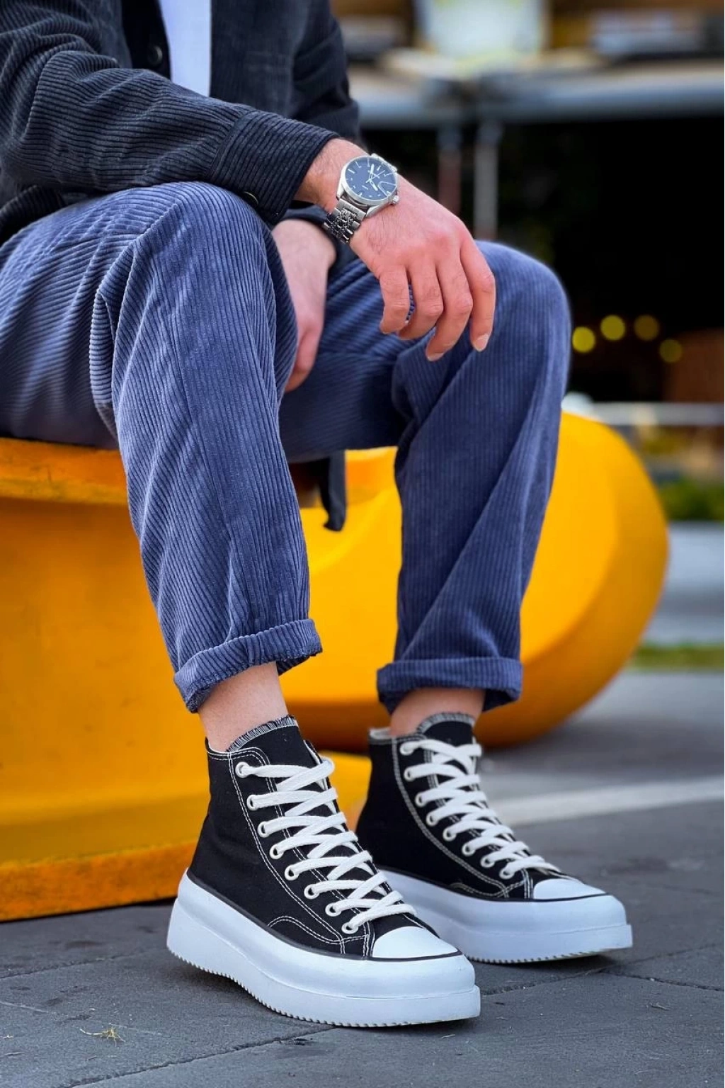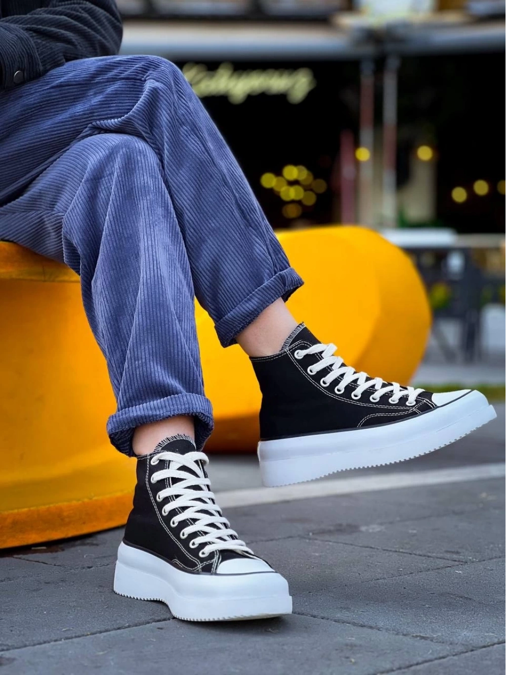 BİÇOMİ KB-CX-3 Kuback Uzun Siyah Keten Beyaz Yüksek Taban Spor Ayakkabı