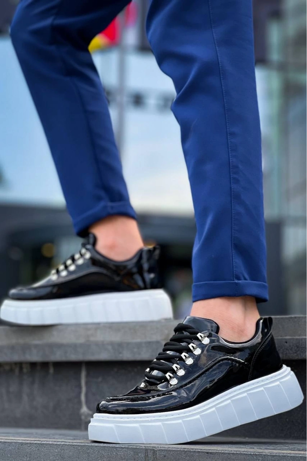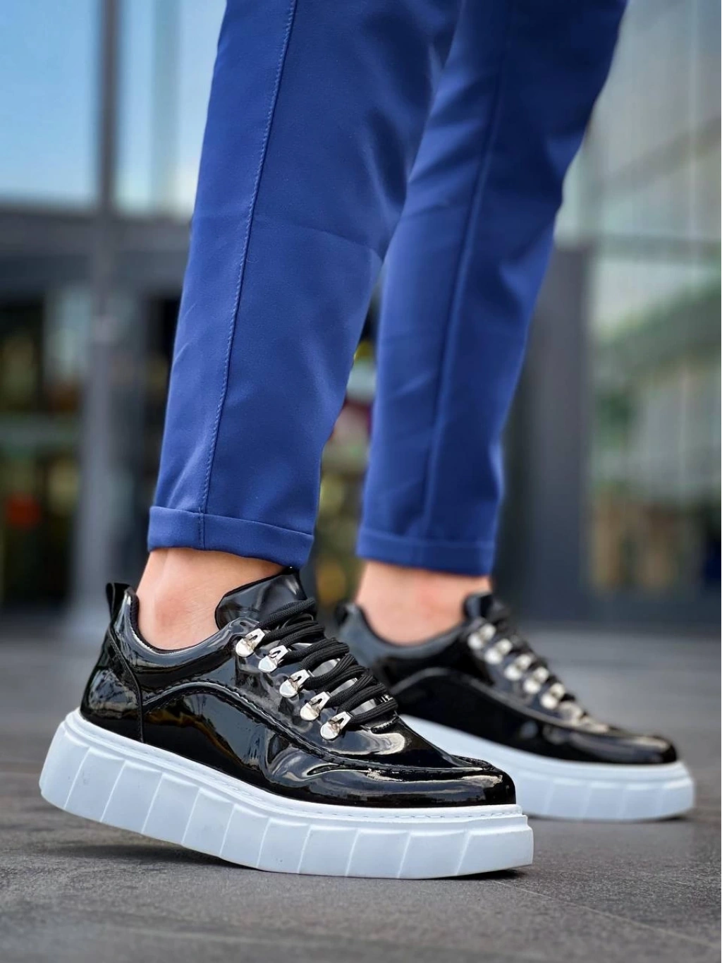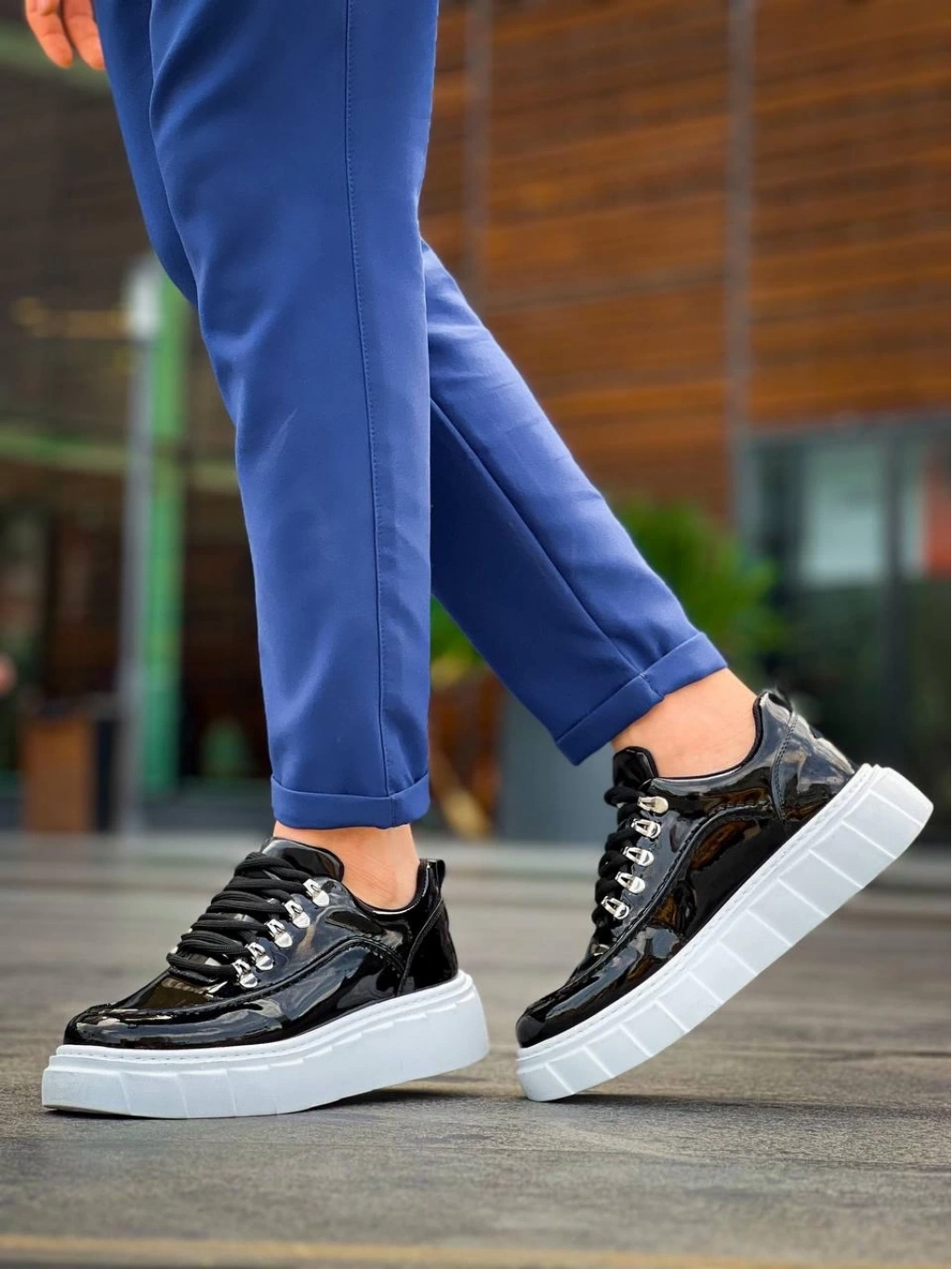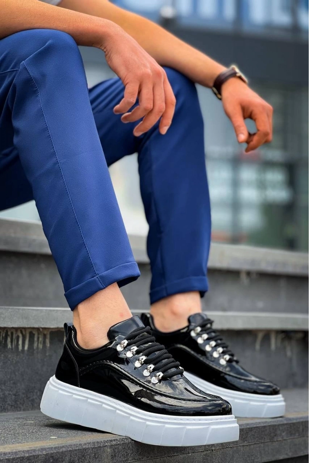 BİÇOMİ KB-X10 Kuback Siyah Rugan Beyaz Yüksek Taban Günlük Spor Ayakkabı
