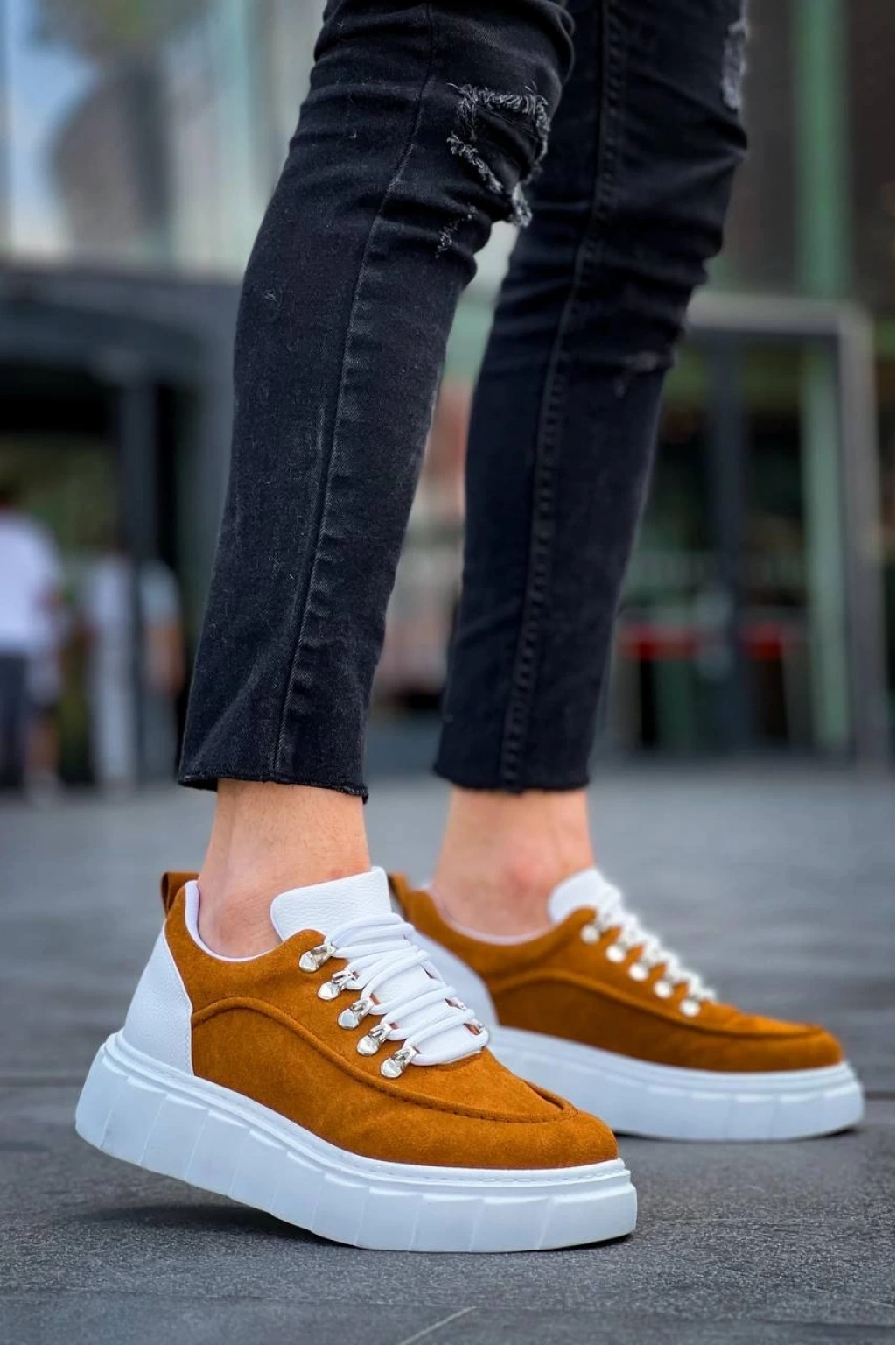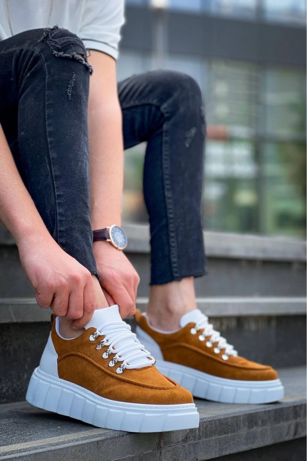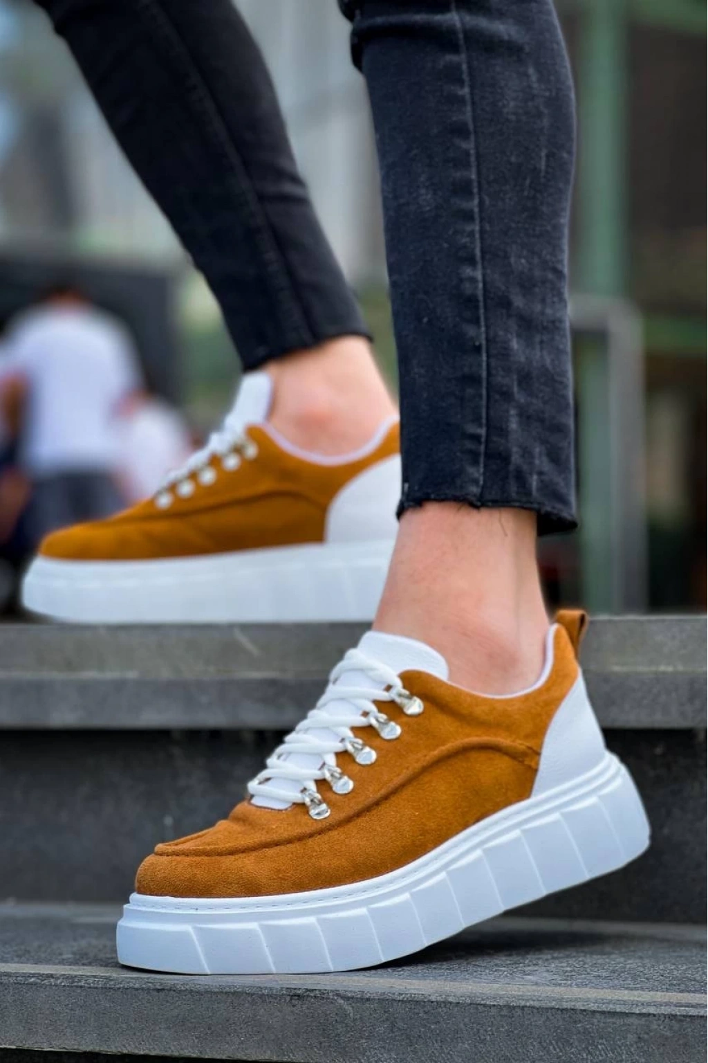 BİÇOMİ KB-X10 Kuback Taba Süet Beyaz Yüksek Taban Günlük Spor Ayakkabı