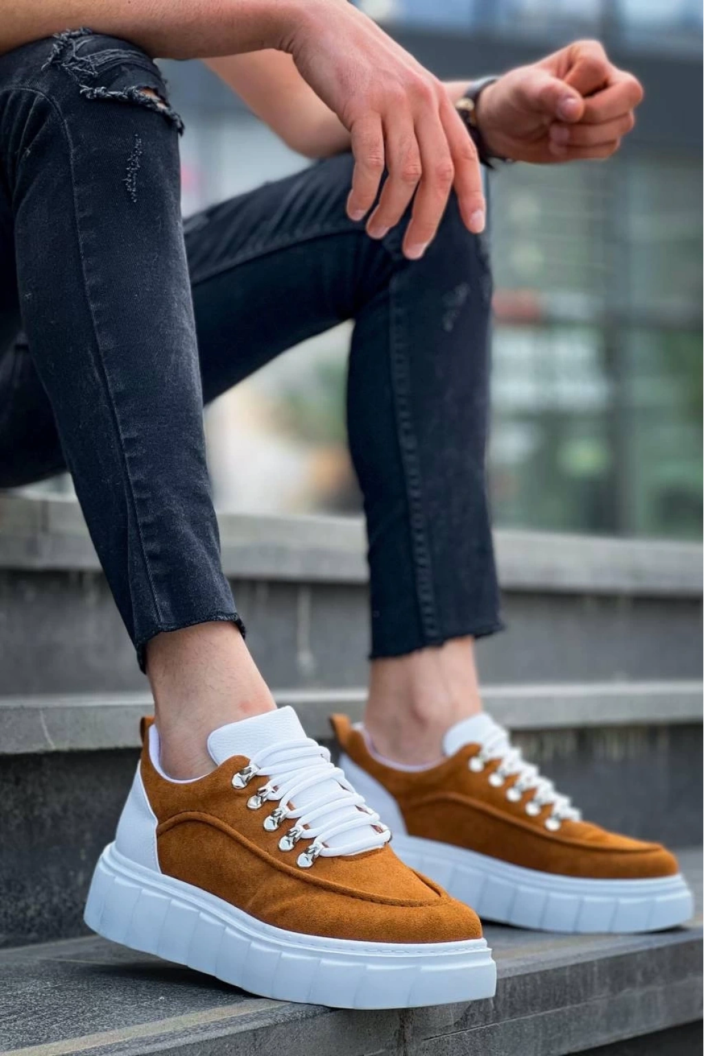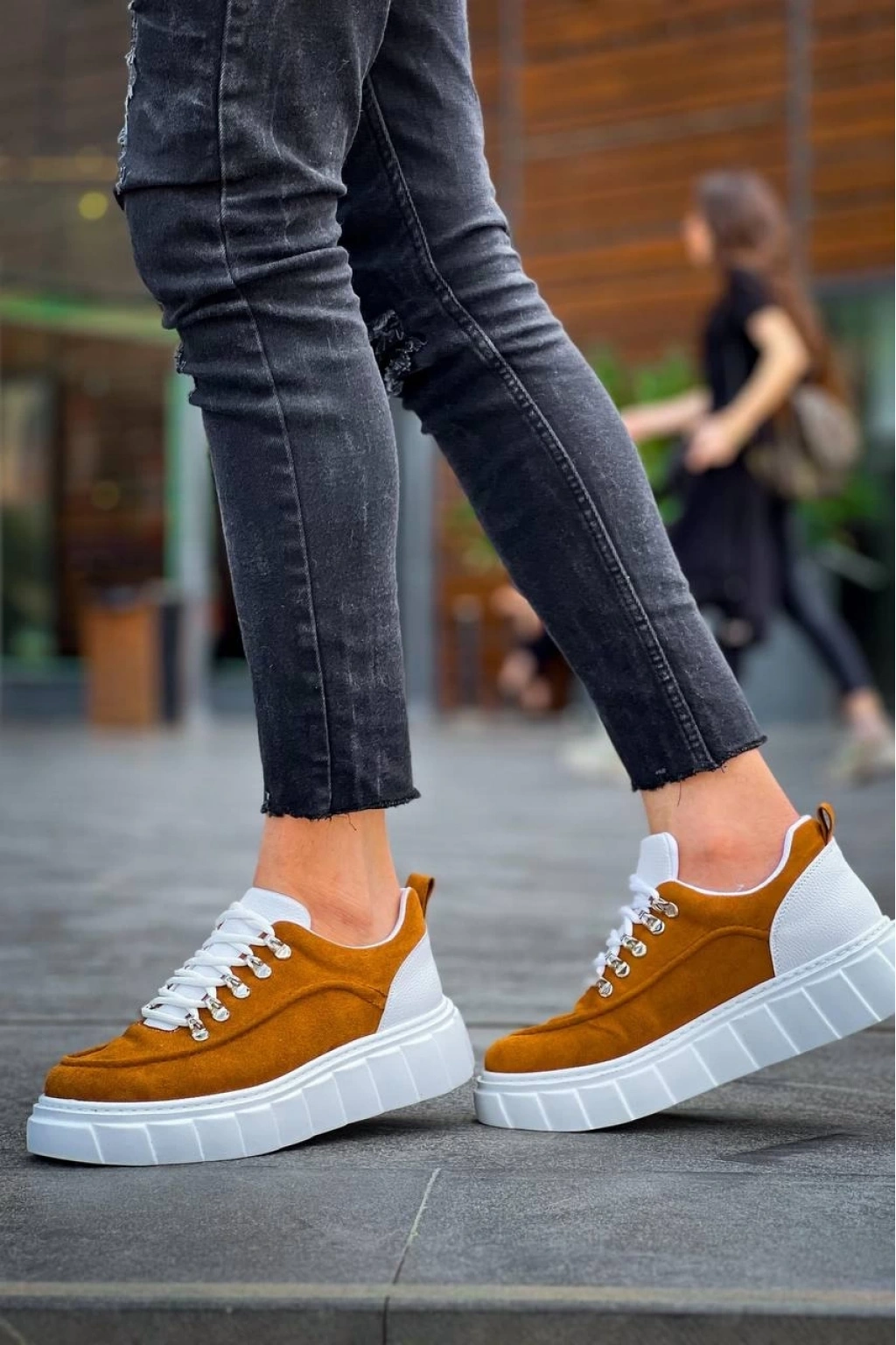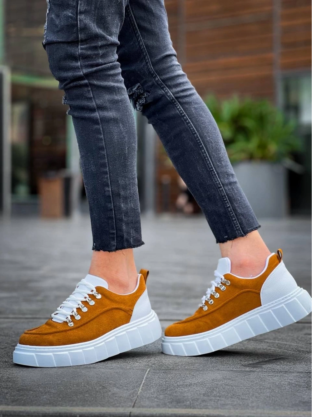 BİÇOMİ KB-X10 Kuback Taba Süet Beyaz Yüksek Taban Günlük Spor Ayakkabı