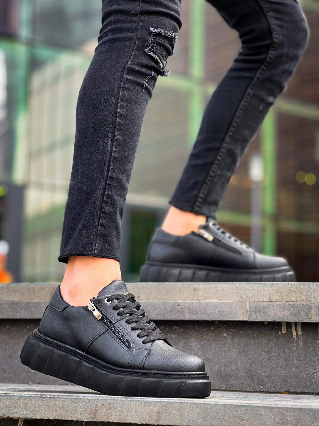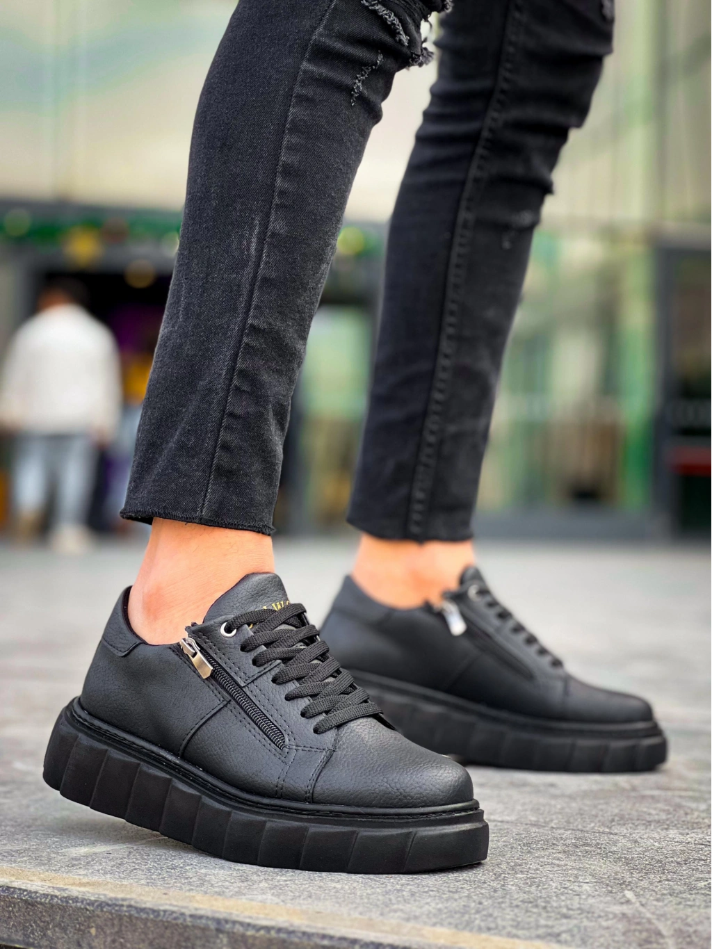 BİÇOMİ KB-X155 Kuback Siyah Cilt Detaylı Siyah Yüksek Taban Günlük Spor Ayakkabı