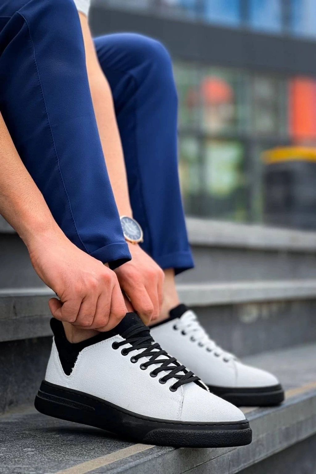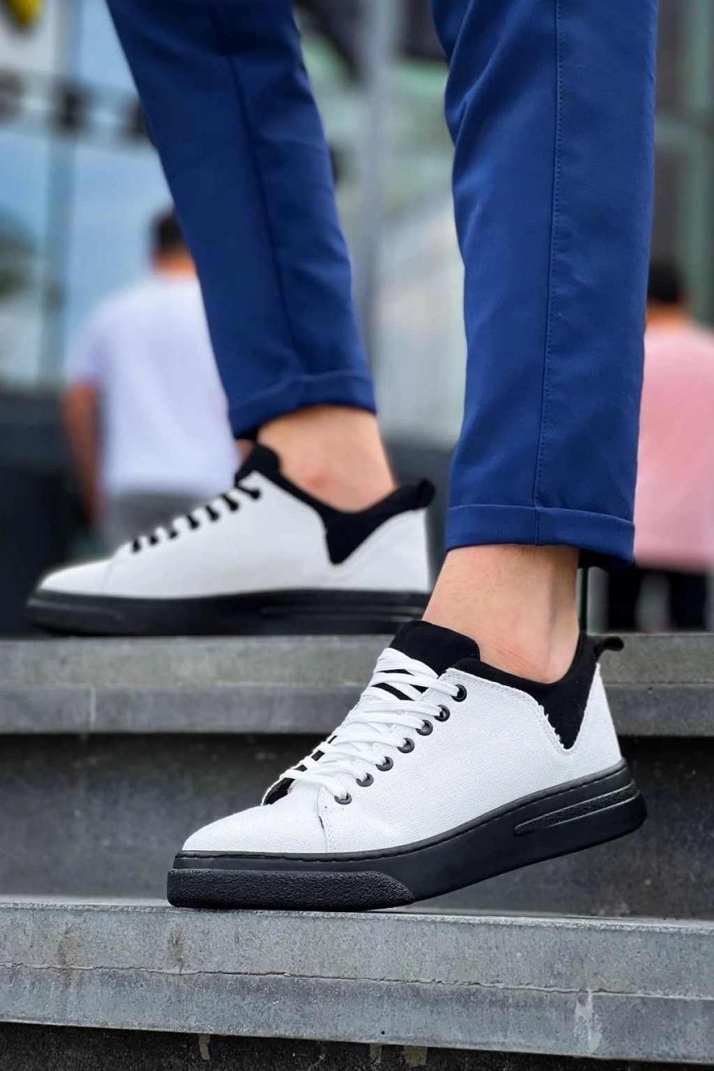 BİÇOMİ KB-X204 Kuback Beyaz Siyah Keten Siyah Yüksek Taban Günlük Erkek Spor Ayakkabı