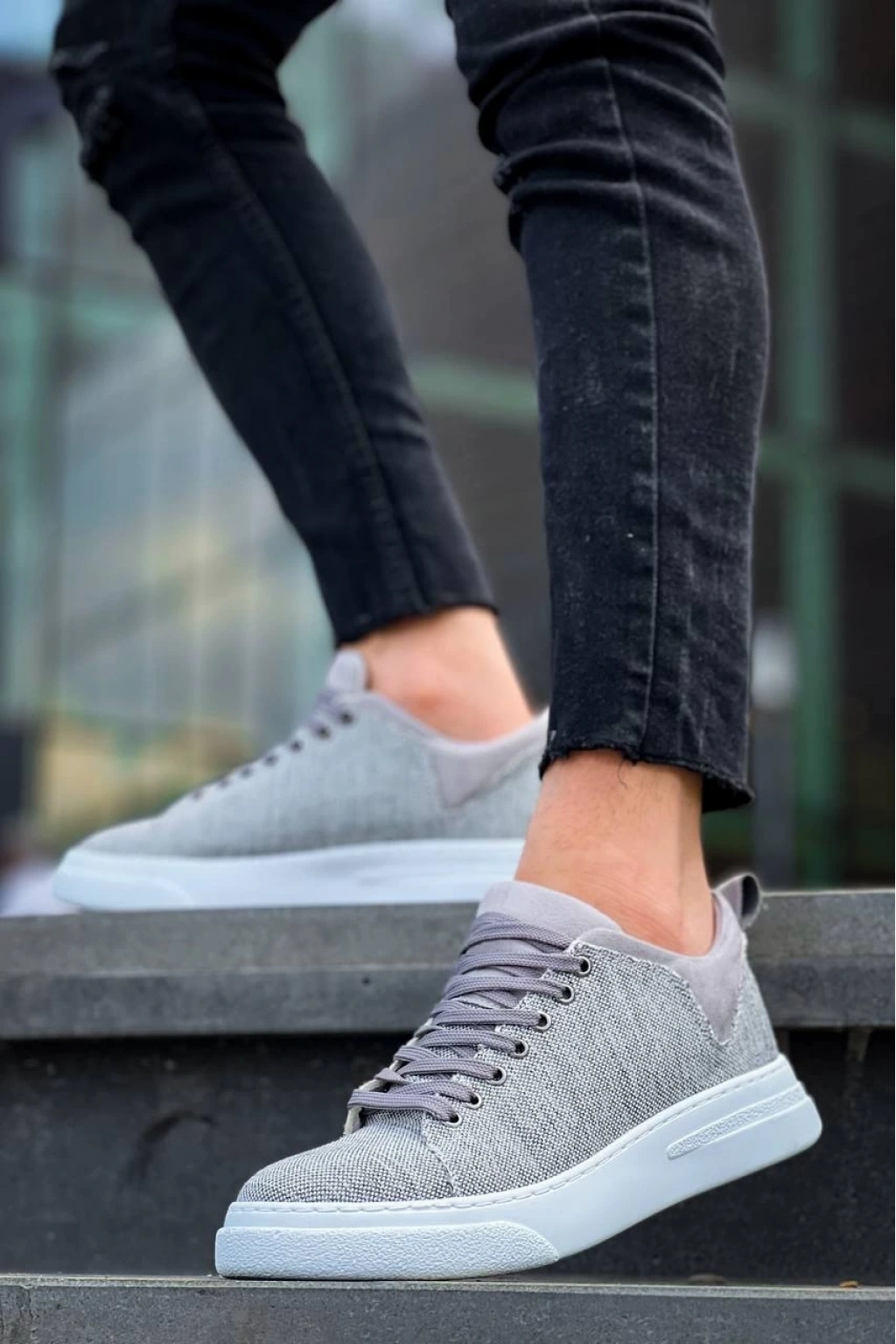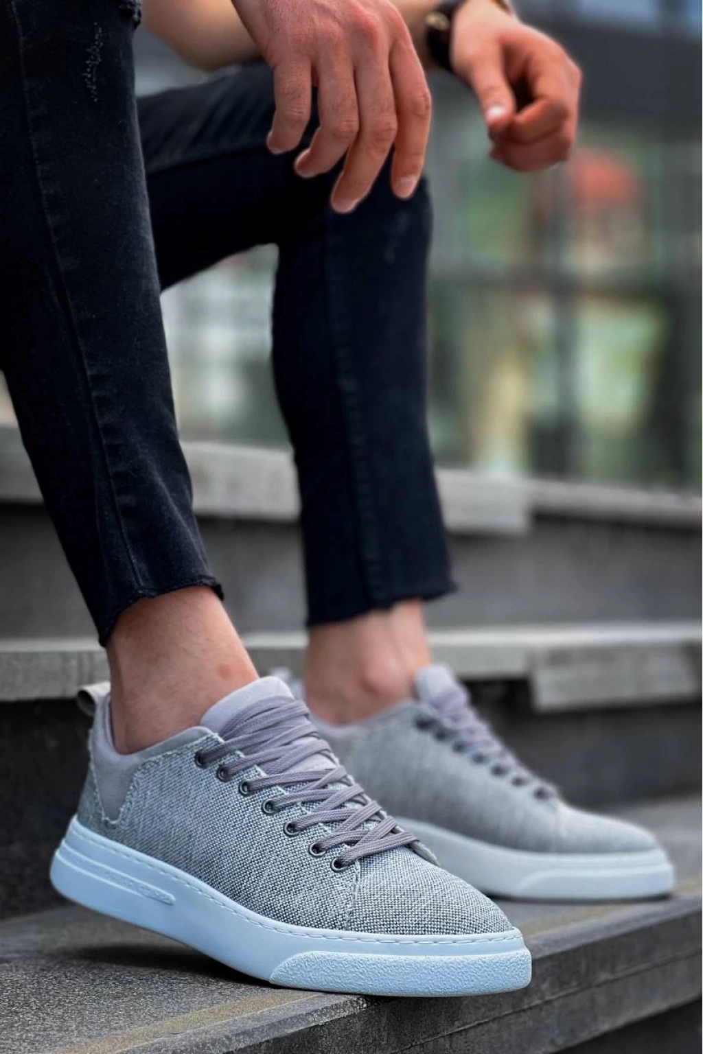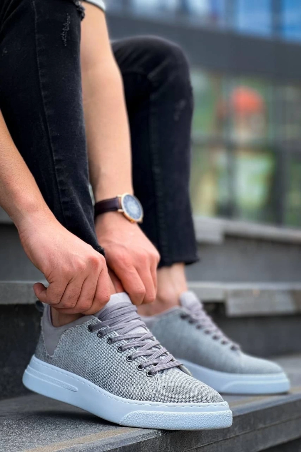 BİÇOMİ KB-X204 Kuback Gri Keten Beyaz Yüksek Taban Günlük Erkek Spor Ayakkabı