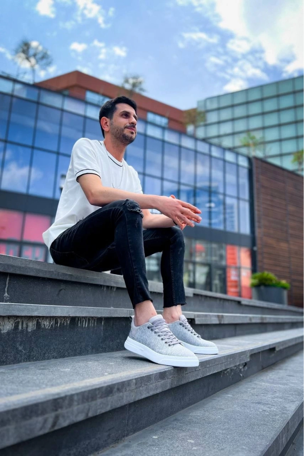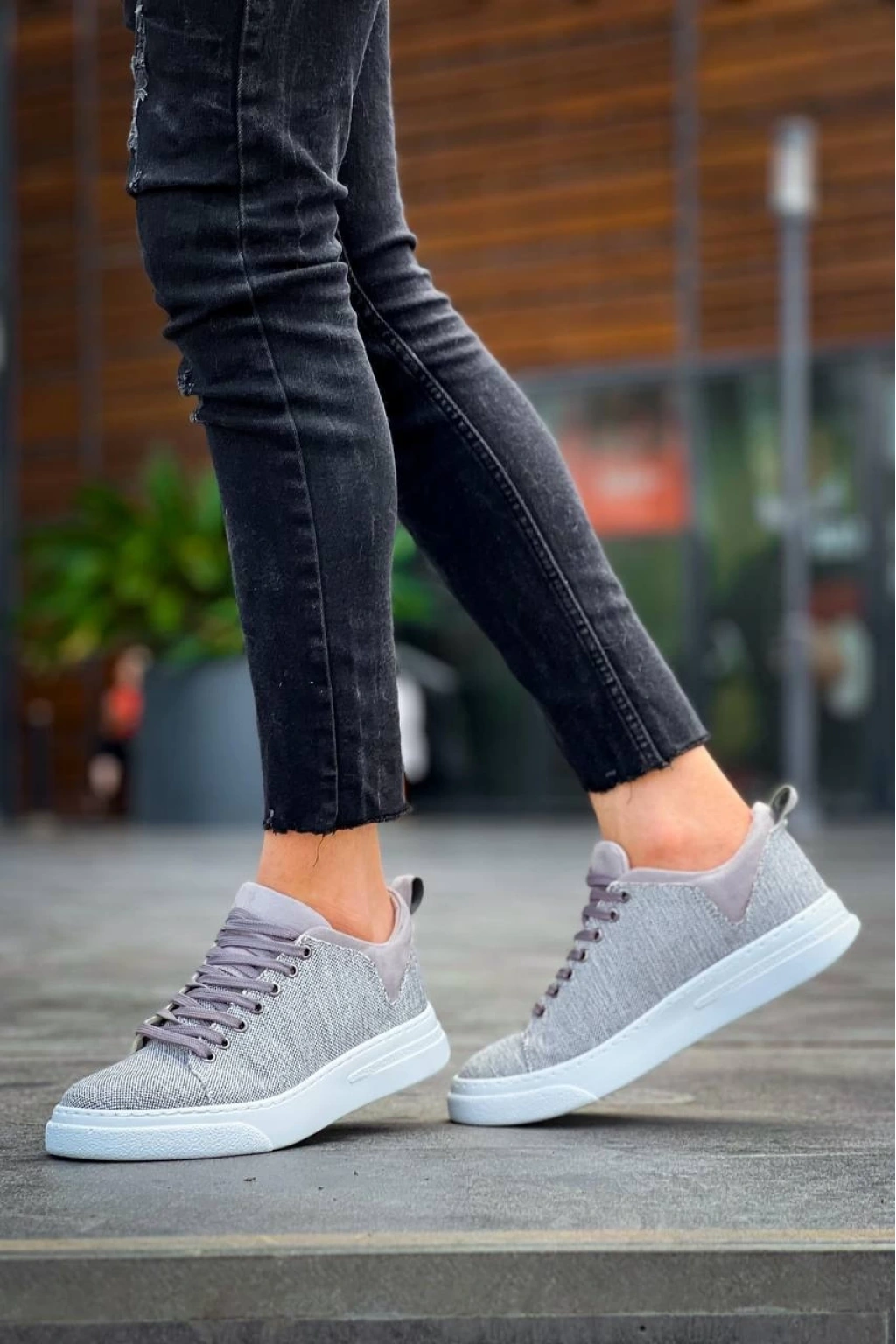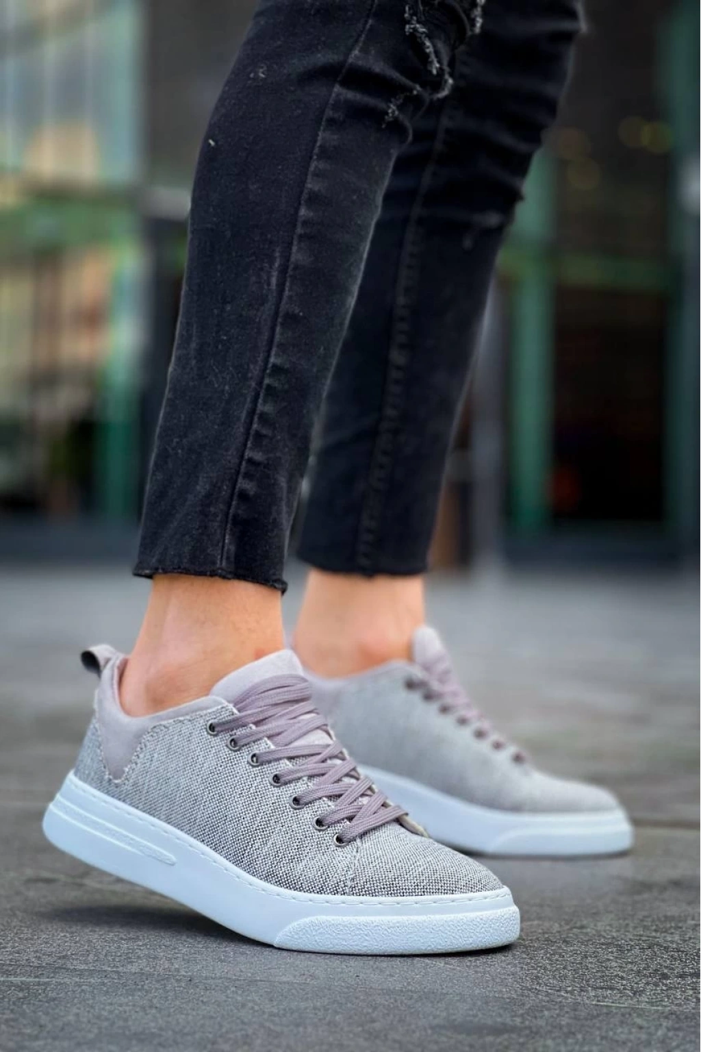 BİÇOMİ KB-X204 Kuback Gri Keten Beyaz Yüksek Taban Günlük Erkek Spor Ayakkabı