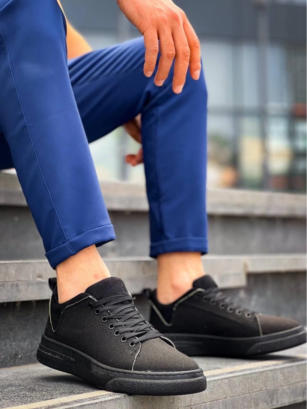 BİÇOMİ KB-X204 Kuback Siyah Keten Siyah Yüksek Taban Günlük Erkek Spor Ayakkabı