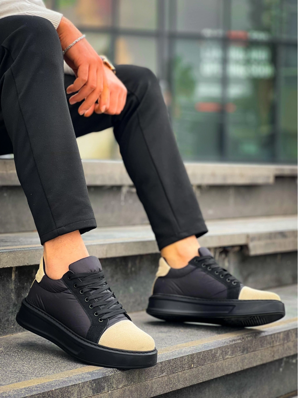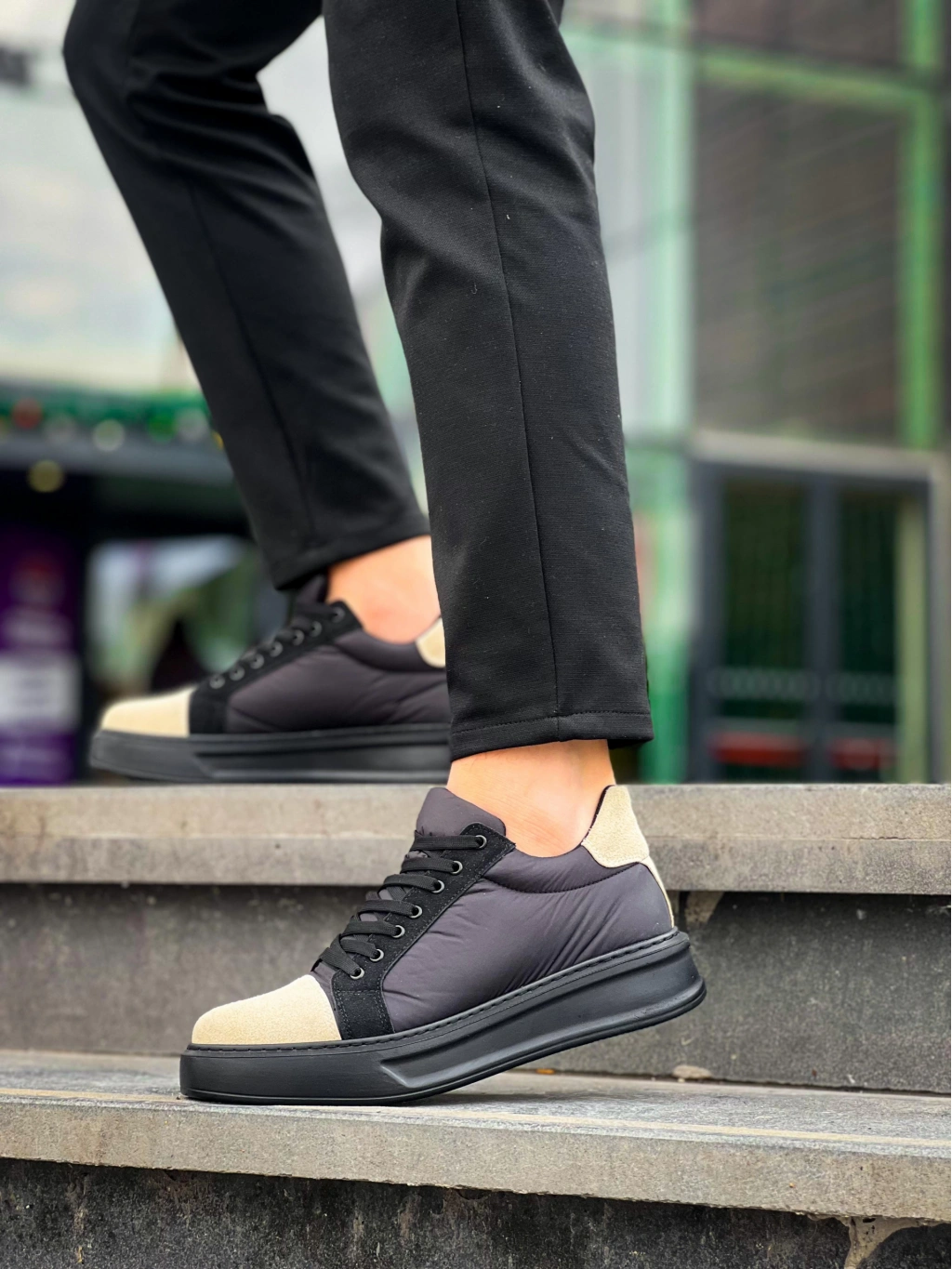BİÇOMİ KB-X46 Kuback Siyah Bej Yüksek Siyah Taban Günlük Spor Ayakkabı