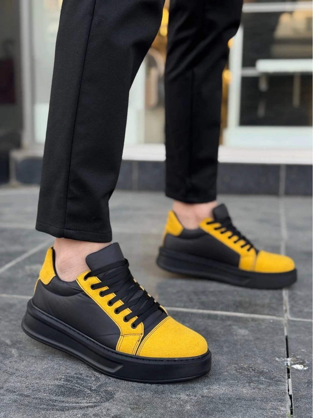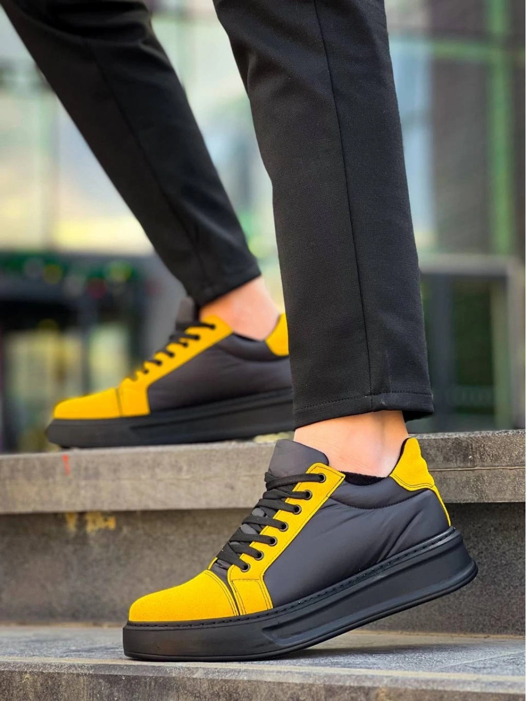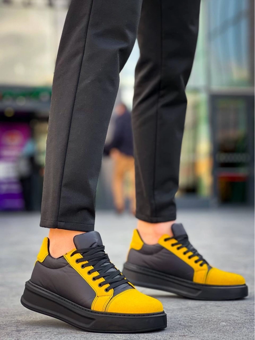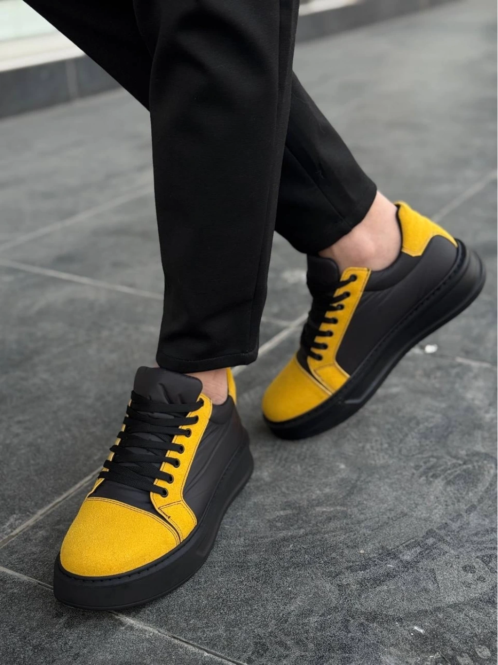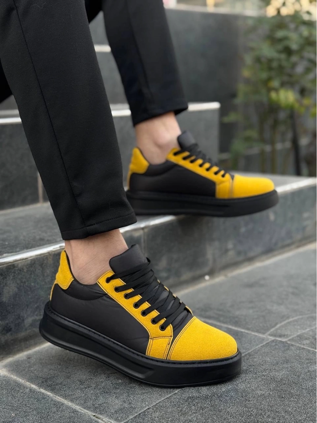 BİÇOMİ KB-X46 Kuback Siyah Sarı Yüksek Siyah Taban Günlük Spor Ayakkabı