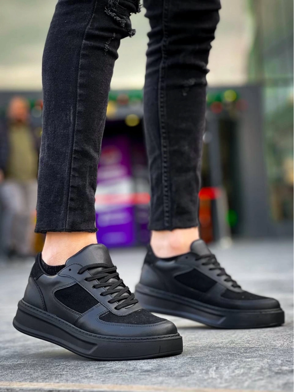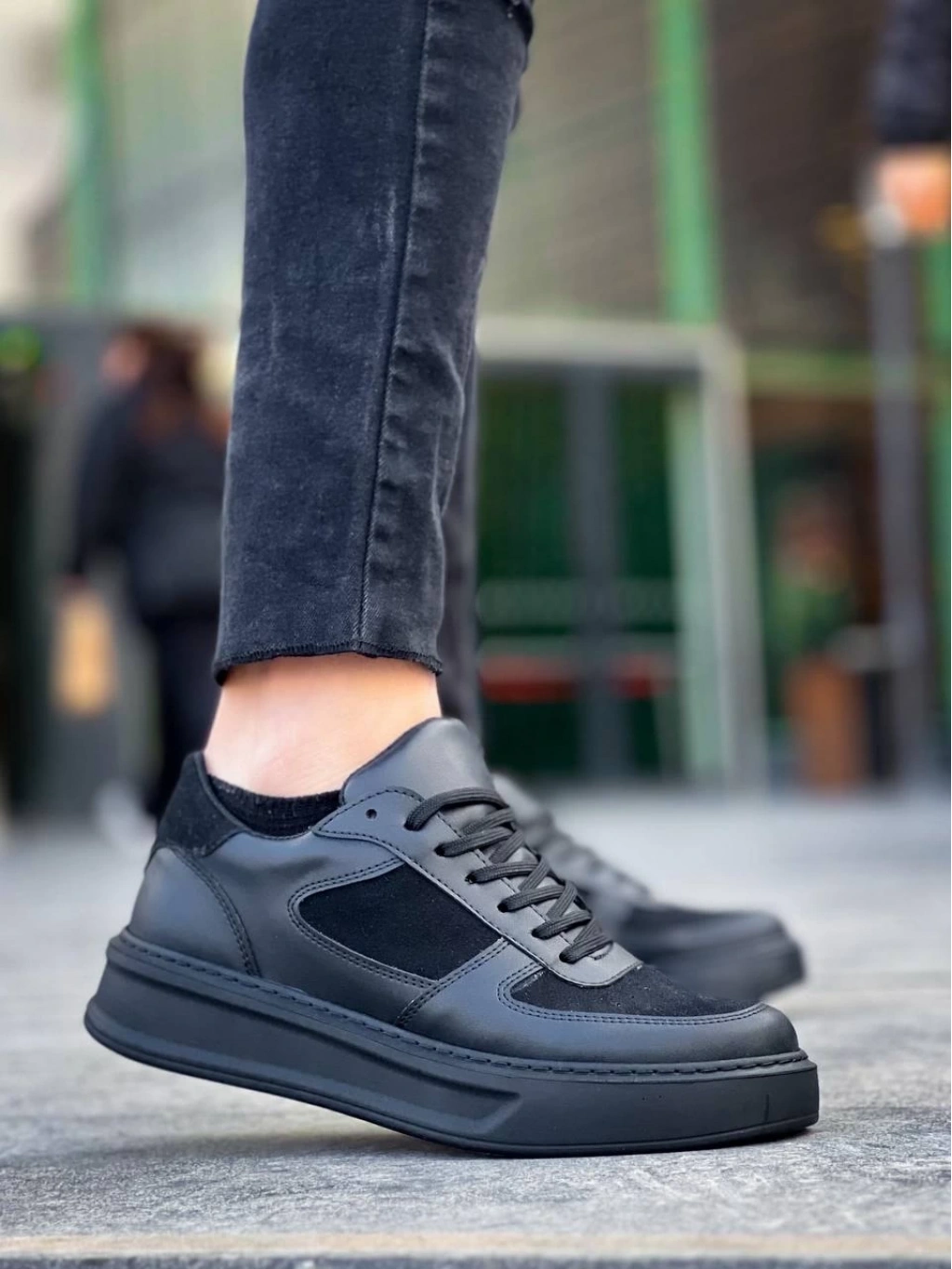 BİÇOMİ KB-X8 Kuback Siyah Cilt Siyah Süet Detaylı Siyah Yüksek Taban Günlük Spor Ayakkabı
