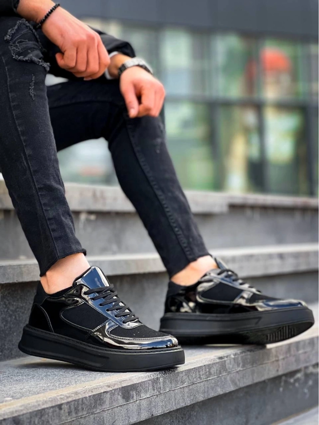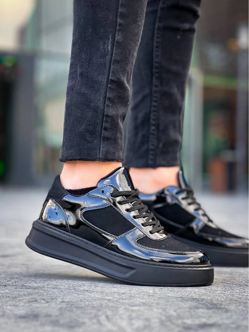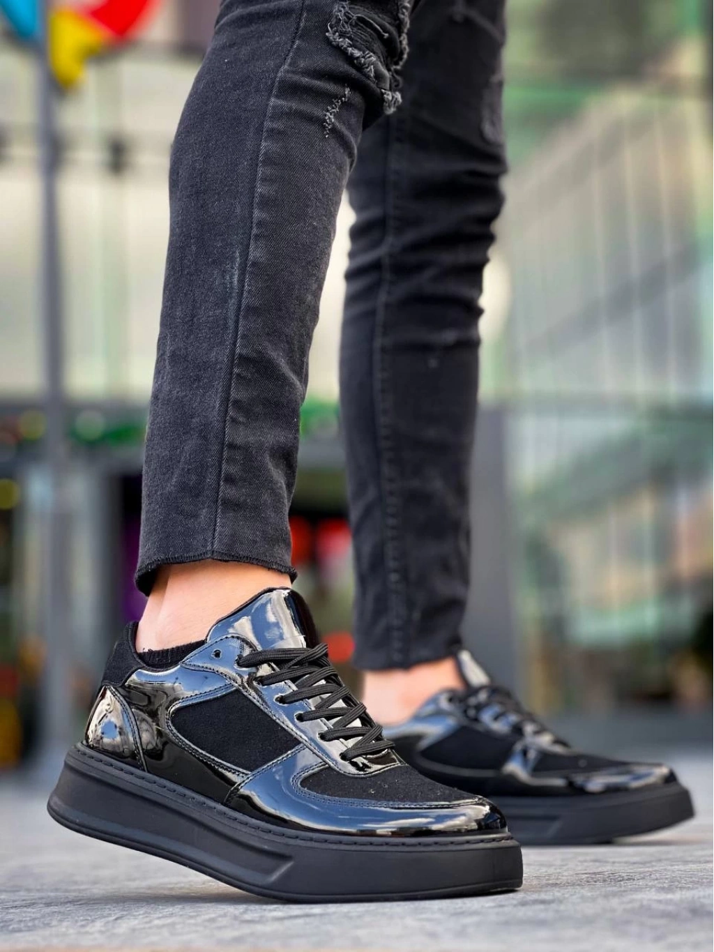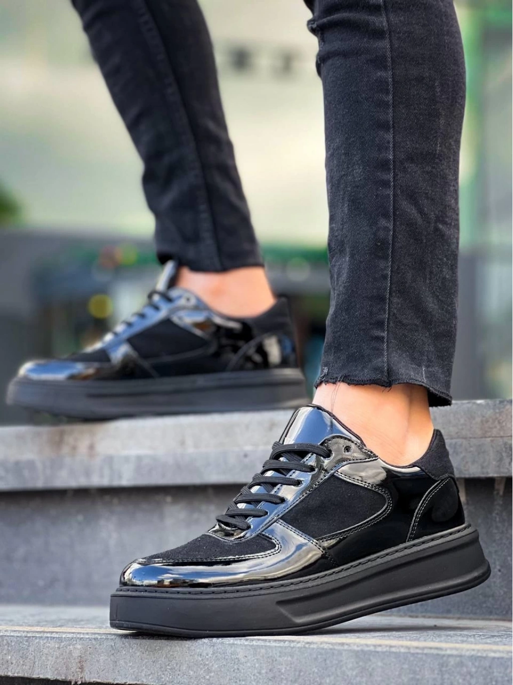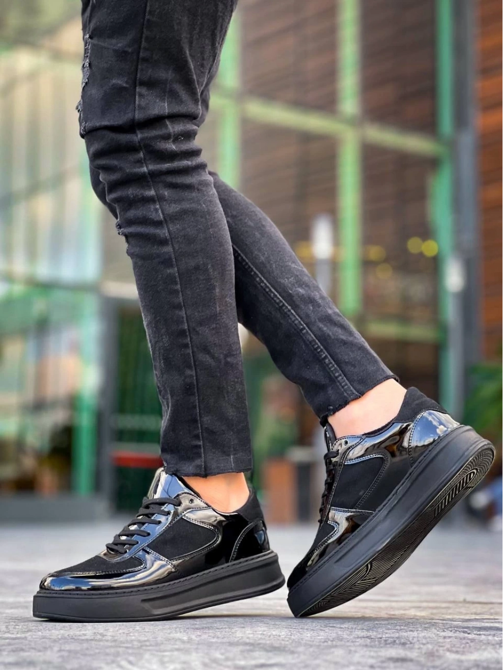 BİÇOMİ KB-X8 Kuback Siyah Rugan Yüksek Siyah Taban Günlük Spor Ayakkabı