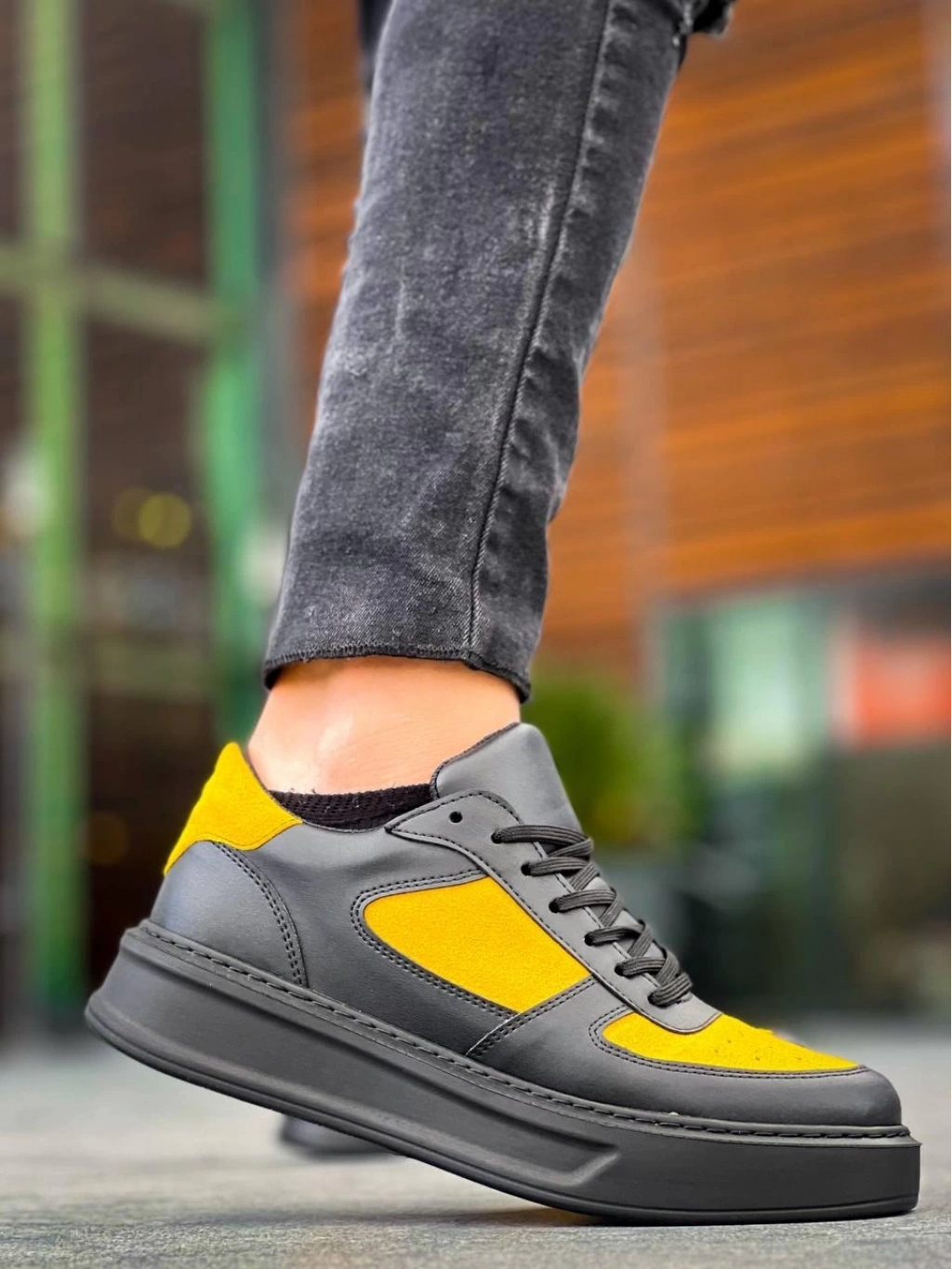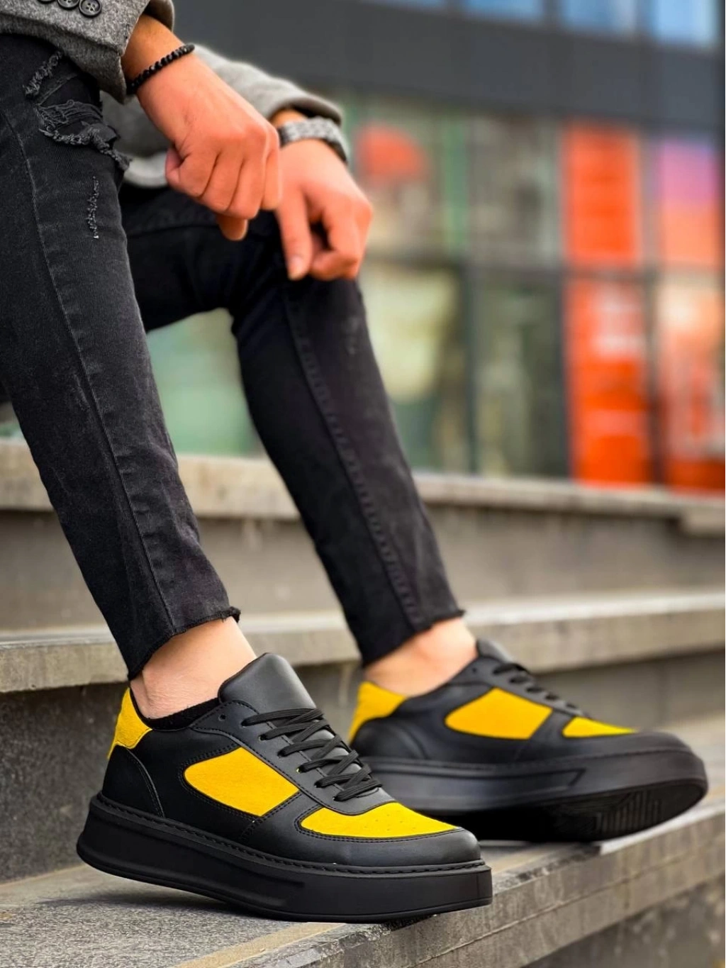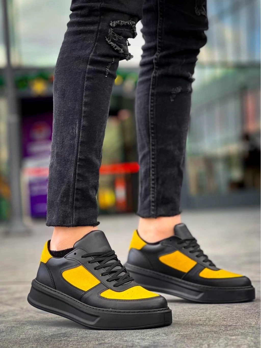 BİÇOMİ KB-X8 Kuback Siyah Sarı Cilt Yüksek Taban Günlük Spor Ayakkabı