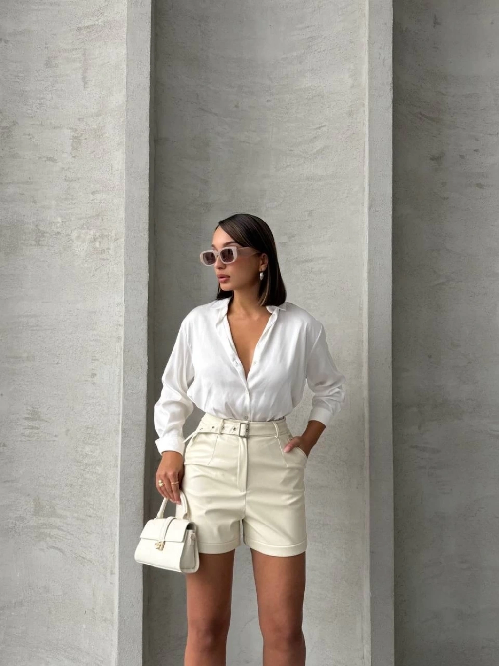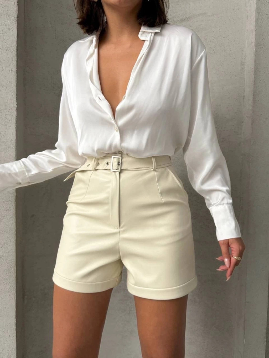 Şıklık ve rahatlığı bir arada sunan kemerli deri şort ile tarzınızı konuşturun!
