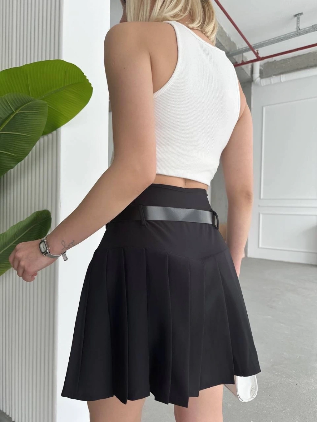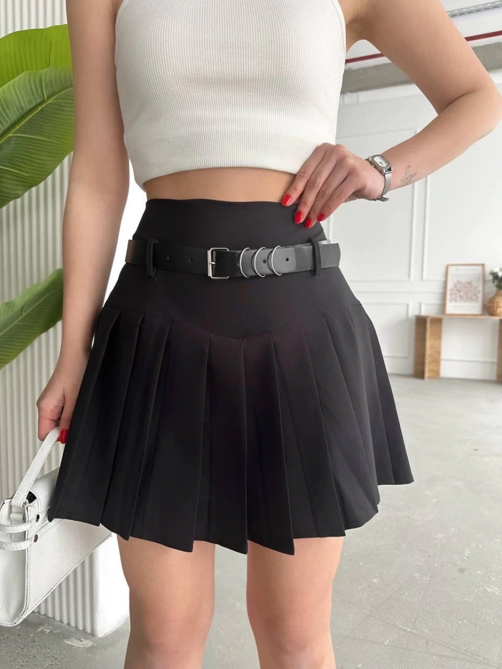 BİÇOMİ Kemerli pikseli şort etek