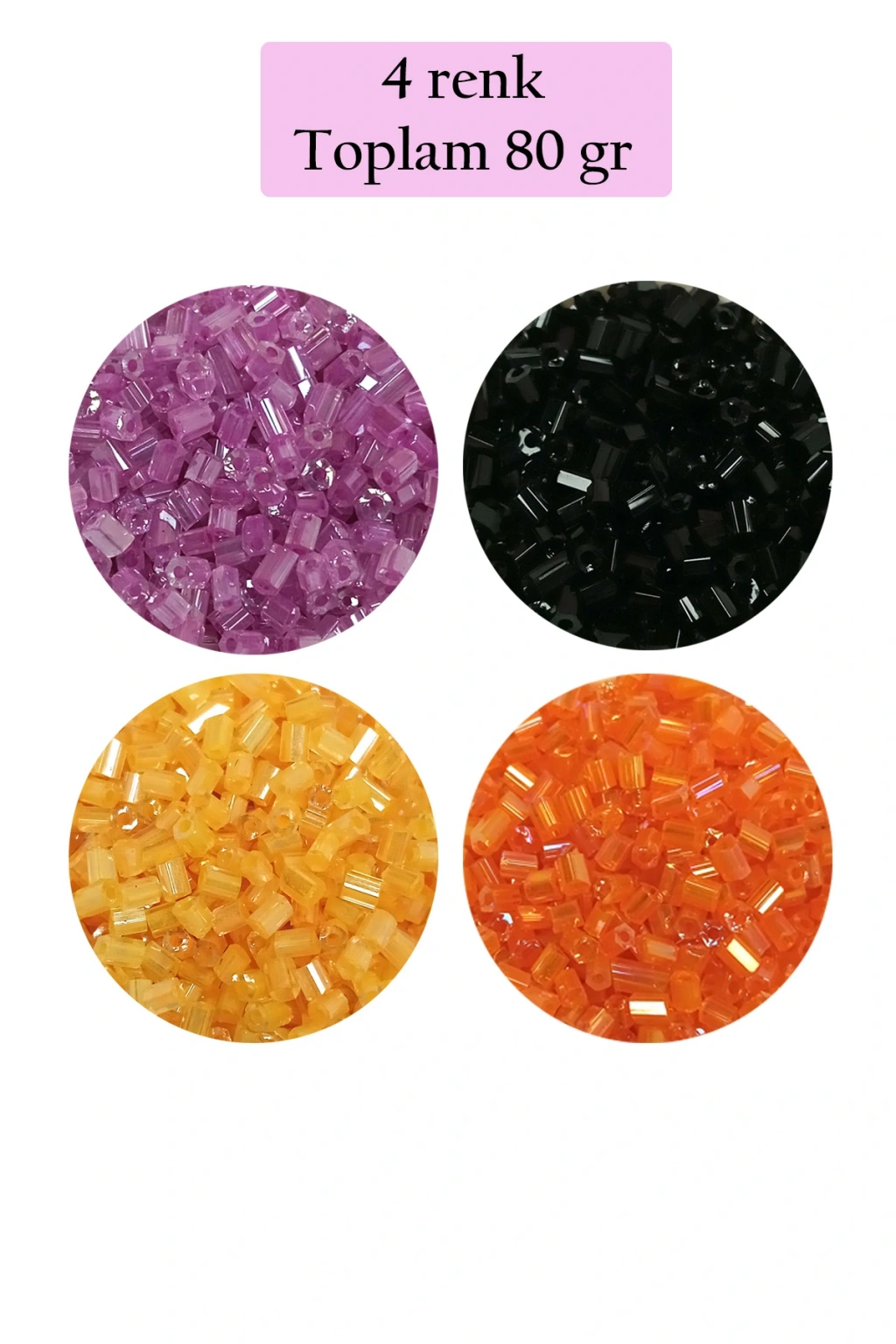 Kesme Cam Boncuk 2mm - 4 Renk - Toplam 80 Gram - BNC437 Renkler : Şeffaf Eflatun - Siyah - Şeffaf Koyu Sarı - Şeffaf Turuncu Kesme boncuklar camdır. 1 paket yaklaşık 4 Renk Toplam 80 gram boncuk içerir. Kesme boncuklar genelde yazma ve gelinlik gibi elbise süslemelerinde kullanılabilir. |