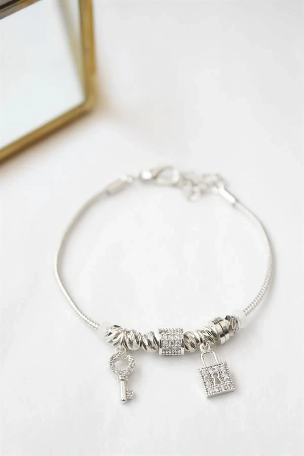 biçomi Kilit Anahtar Charmlı Bileklik - Gümüş