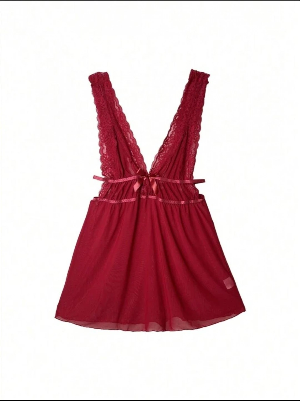 Bicomi Kırmızı Dantel İşlemeli Tül Fantezi Gecelik