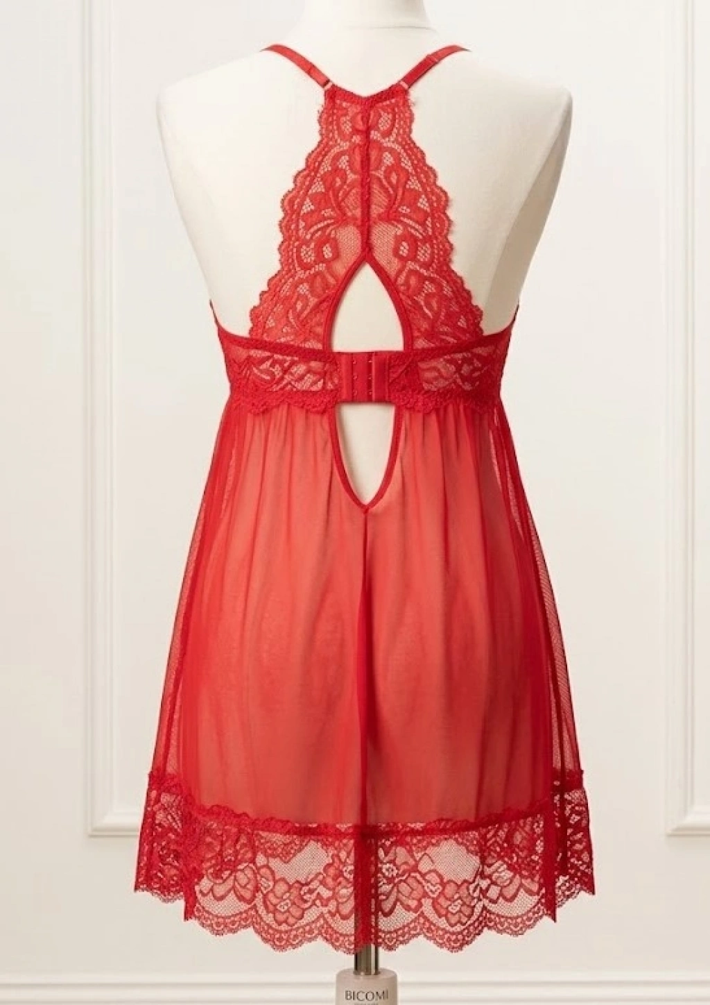 Kendinizi hiç olmadığı kadar özel ve çekici hissetmeye hazır mısınız? Bicomi’nin bu özel tasarımı, kırmızının vazgeçilmez tutkusunu dantelin zarafetiyle birleştiriyor. İnce tül dokusu teninizde tüy kadar hafif bir his bırakırken, özenle işlenmiş dantel detayları siluetinize romantik bir hava katıyor. Özellikle derin sırt dekoltesi, duruşunuza estetik ve cesur bir imza atıyor. Hem konforu hem de iddialı bir şıklığı arayan kadınlar için tasarlanan bu gecelik, özel anlarınızın unutulmaz eşlikçisi olacak