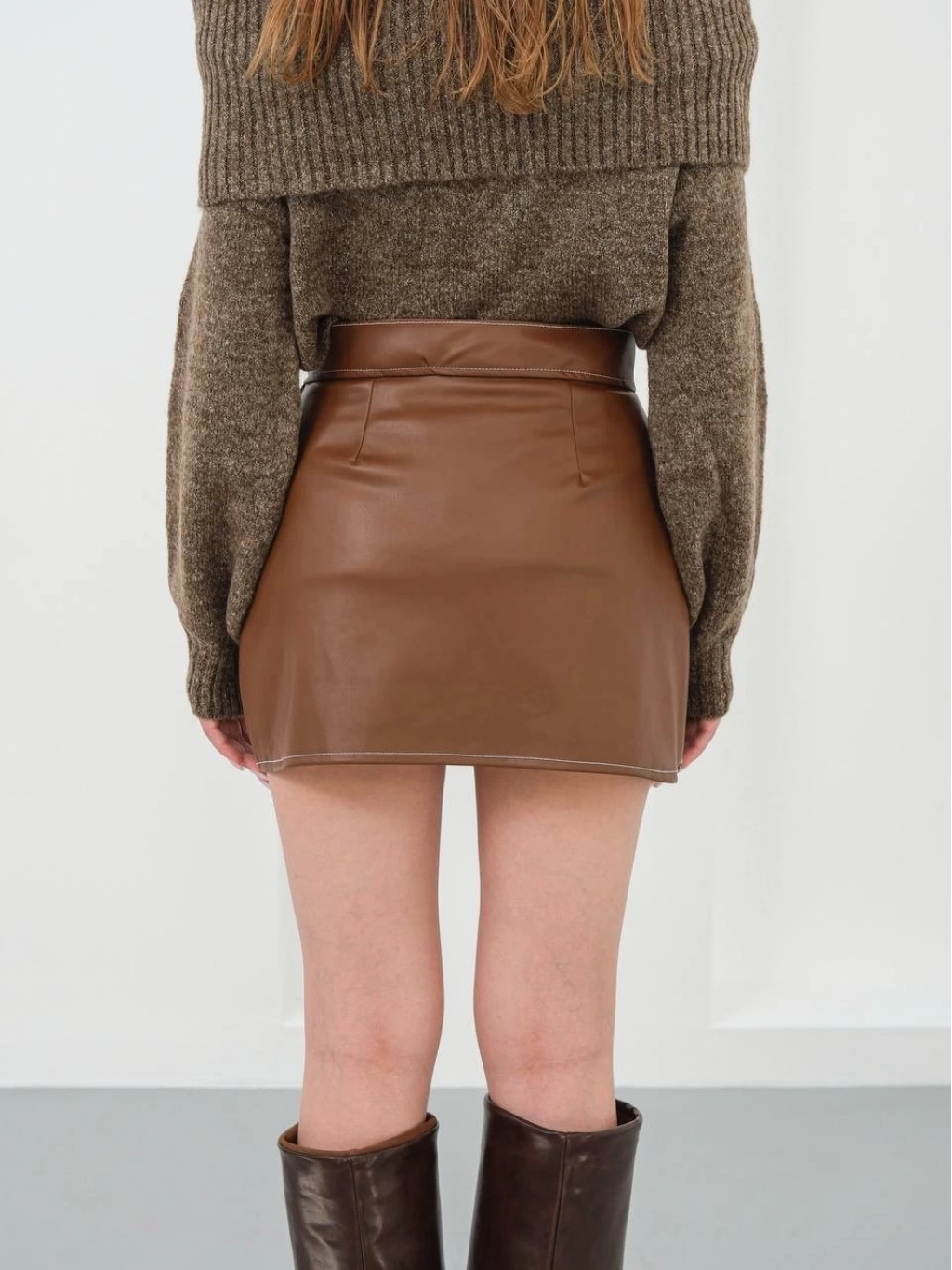 Şıklığı ve rahatlığı bir arada sunan Kontrast deri etek, gardırobunuzun vazgeçilmez parçası olmaya aday!
