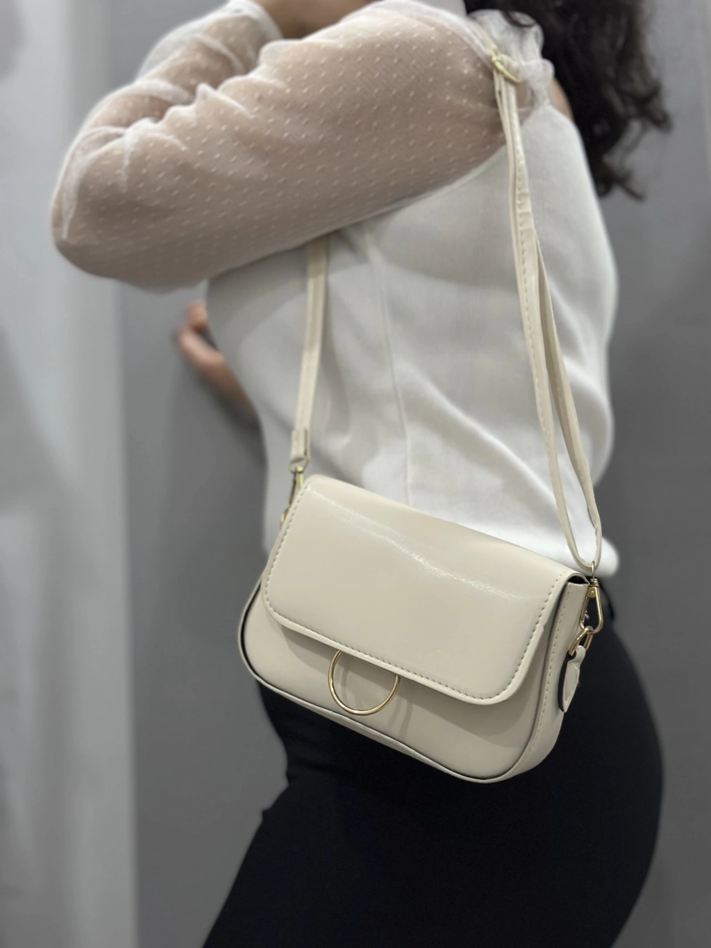 Bej cilt mossi çanta şıklığı ve kullanışlılığı bir arada sunar.