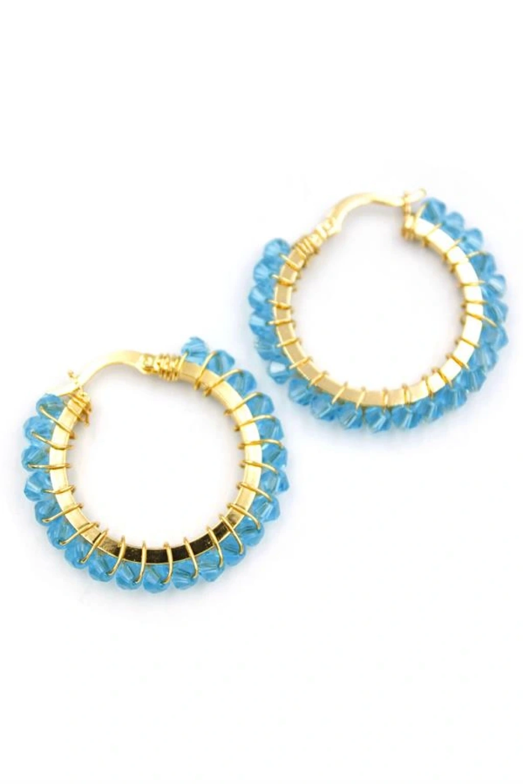 biçomi Kristal Boncuk Halka Küpe - Turkuaz