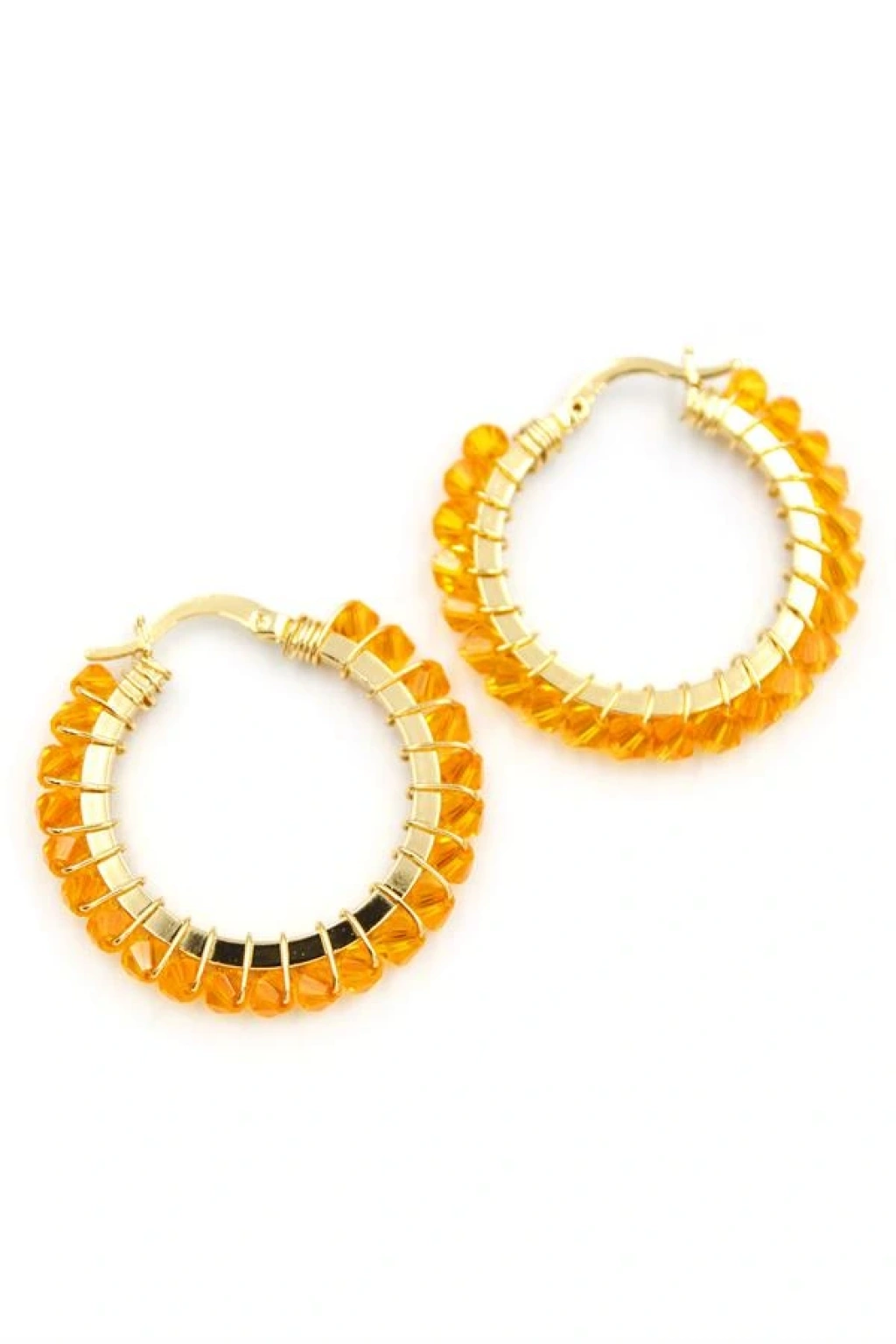 biçomi Kristal Boncuk Halka Küpe - Turuncu