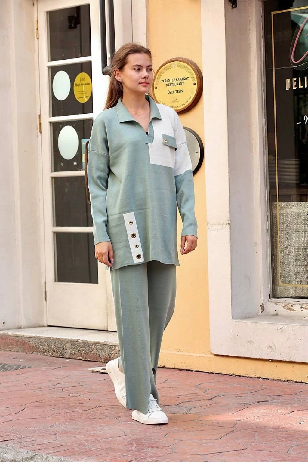 Mint rengiyle şıklığı ve rahatlığı bir arada sunan Kuş Gözü Triko Takım, gardırobunuzun favori parçası olmaya aday!