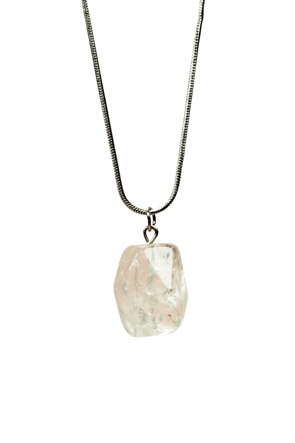 Kuvars Doğal Taşı Zincirli El Yapımı Kolye Uç: 2 cm Zincir: 20 cm Kutulu