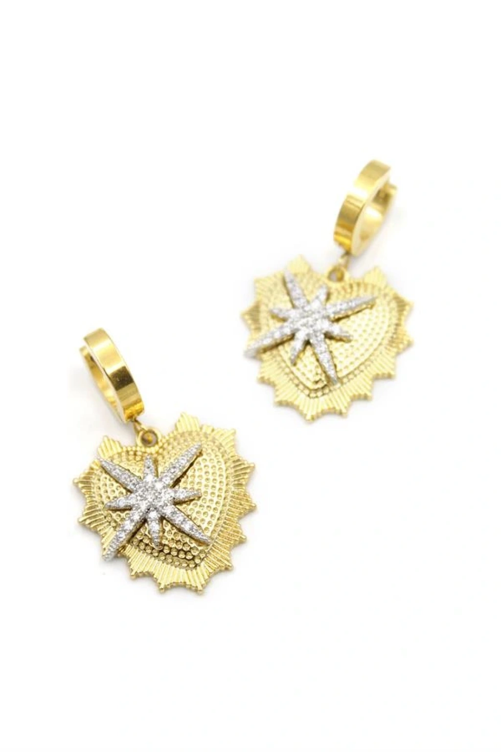 biçomi Sallantılı Taşlı Küpe - Bordo