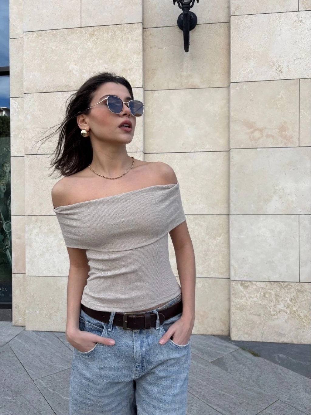 Günlük kullanıma uygun olan bu bluz, denim pantolonlarınızdan eteklerinize kadar birçok kombinasyon için idealdir. KAZAX Madonna yaka sıfır kol bluzu şimdi keşfedin!
